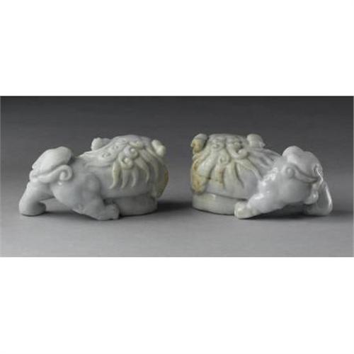 <B>Pair of Chinese Carved Jade/Hardstone Lions<BR></B></I><BR>Pair of Chinese carved jade/hardstone lions. Of pale green coloration<BR>Each 4-1/2in. long<BR><BR> <B>Condition Report:</B> Normal signs of wear as appropriate with age.<BR><BR><b>Shipping:</b> Miscellaneous Collectibles, Larg (<a target="_blank" href="http://www.heritageauctions.com/common/shipping.php">view shipping information</a>)