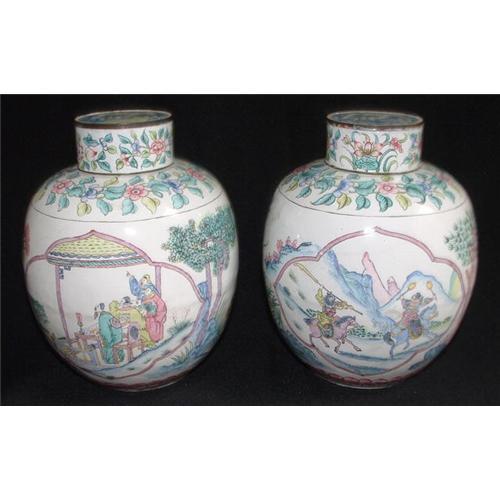<table width="100%" border="0" cellspacing="0" cellpadding="4"><tr><td><em> </em></td></tr><tr> <td width="100%"> Pair of covered tea caddies. Chinese Canton enamel on copper. Ming dynasty in archaic seal. Landscape motif. 19th century. </td></tr><tr> <td> </td></tr><tr> <td>Reference #: CJA0002</td></tr><tr><td>Condition:Excellent</td></tr><tr><td>Year:19th Century</td></tr><tr><td>Height:7.5</td></tr><tr><td>Depth:7</td></tr><tr><td>Width:7</td></tr><tr><td>Title:Pair of Chinese enamel tea caddies</td></tr><tr><td>Location:Seattle, WA</td></tr></table>