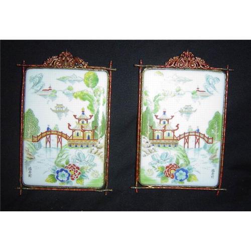 Antique Pair of Chinoiserie Paintings on Porcelain