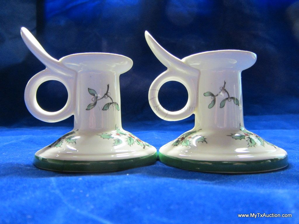 Classic finger handle candle holder #S3324-D '1979' Spode Christmas Tree china pattern.