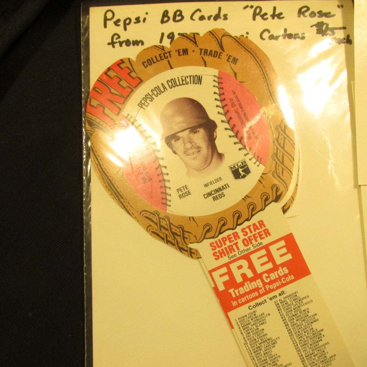 Pair of Cigar Box labels "Handmade National League Perfectos"; "Safety Glass Manufacturers Association Grant Building..Pittsburgh, Pa." from the Chicago's 1933 World's Fair; & (3) Pepsi-Cola Collection Pete Rose fans.