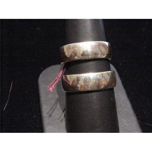 Wonderful Circa 1930 14Kt tri-color gold - pink, green, yellow pair of wedding bands in wonderful condition. - 1/4 inch wide - one sized 8 1/4-1/2 and one 9 1/2-3/4. Great condition.