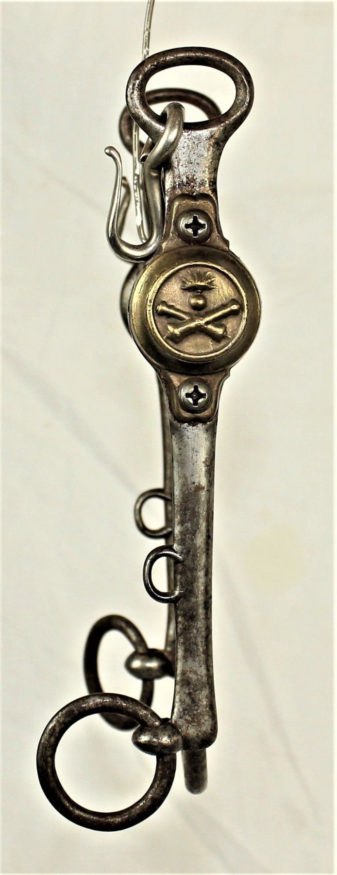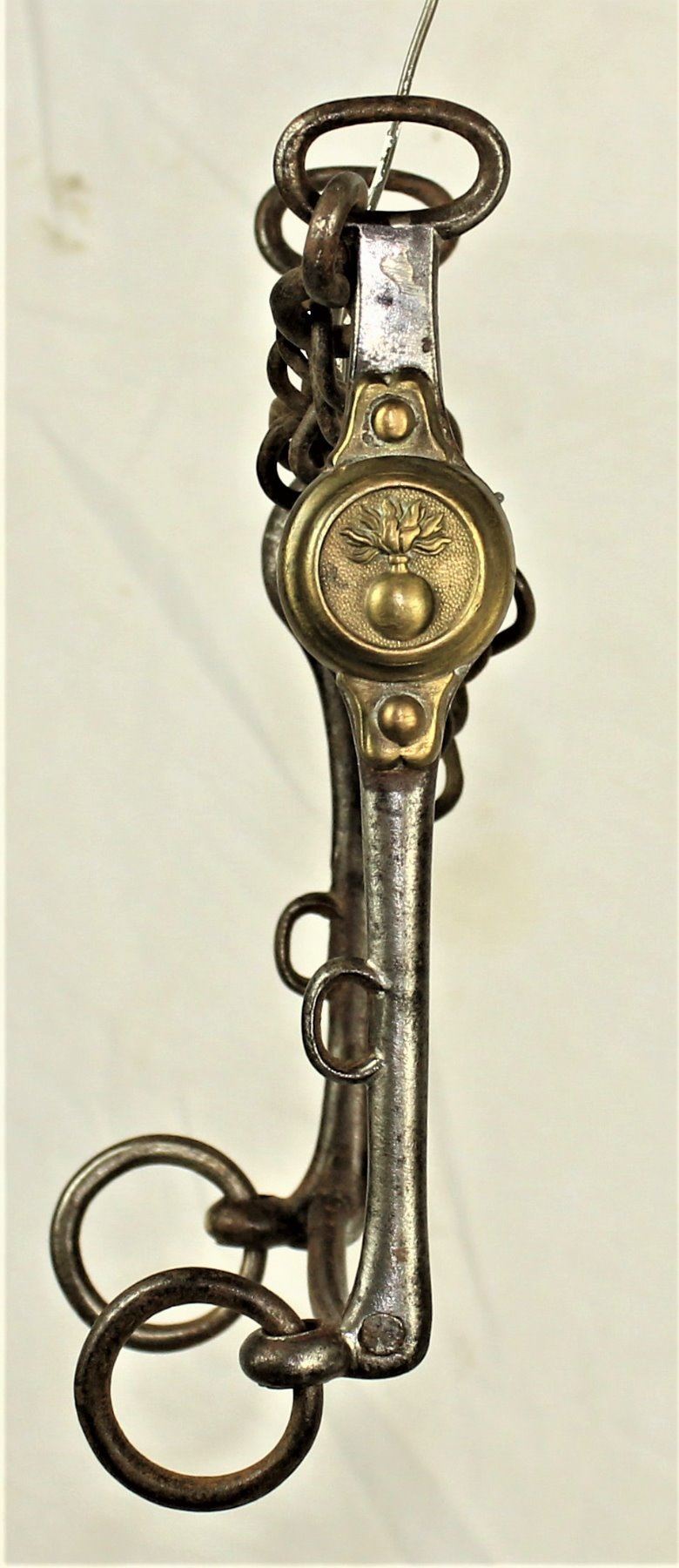 Two Civil War period Artillery bits with desirable brass medallions, one with Cross Cannons, and the other with Flaming Bomb.