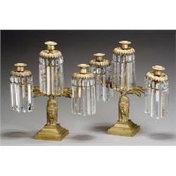 Pair of Classical Ormolu and Cut Glass Three-Light Candelabra