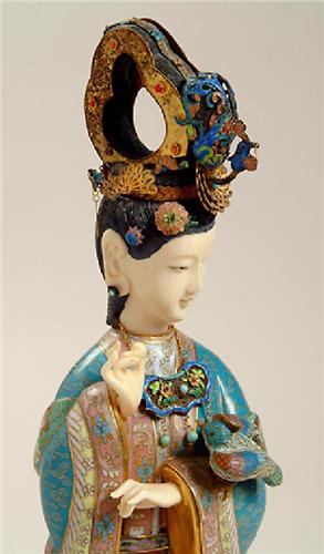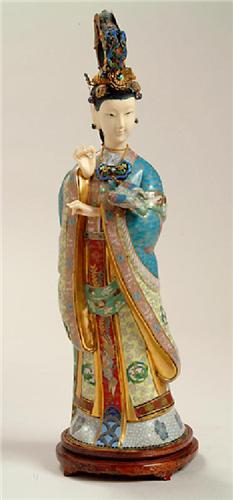 Ching Dynasty, Kuang Hsu period (1875 - 1908) hands and faces are carved tusks. 22 1/2" by 7".