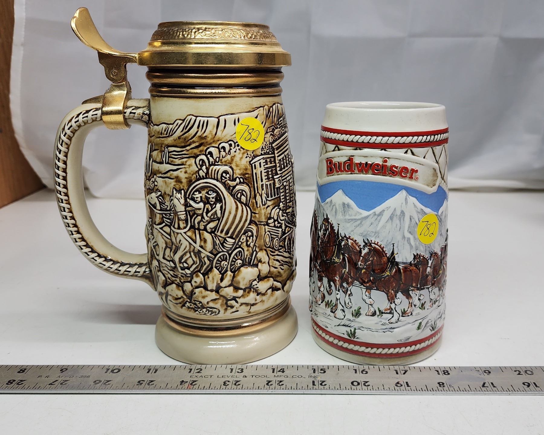 Pair of Collector's beer stein/mug - Avon's "Gold Rush" & Budweiser mug