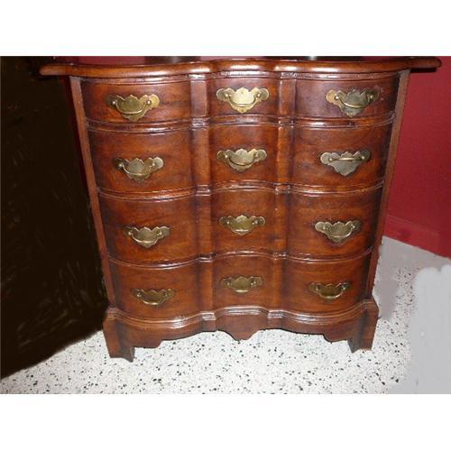This is a fabulous pair of solid walnut Chippendale style commodes nightstands bedside tables with five graduated drawers each.