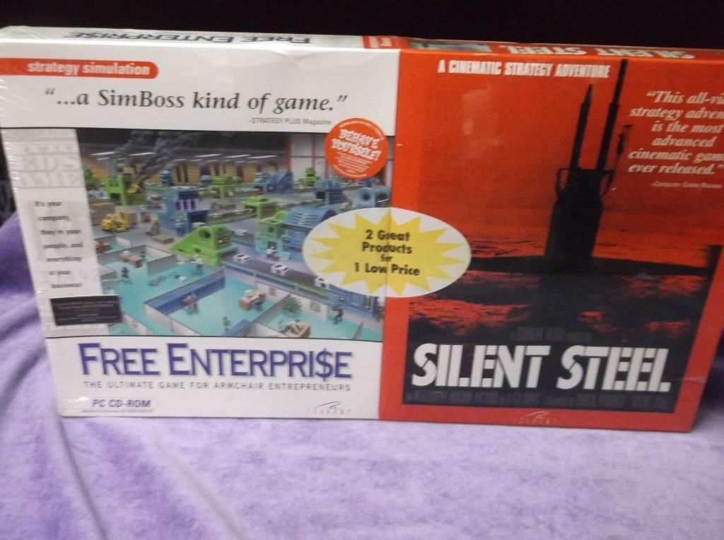 Silent Steel - an intelligent motion picture on 4 cd roms A Cinematic Strategy Adventure. the other one is Free Enterprise- A Sim Boss Kind Game. The Ultimate Game for Armchair Entrepreneurs