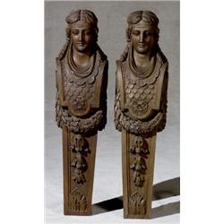 Pair of Continental Oak Architectural Caryatids, Early 20th Century, Each with minor losses a...