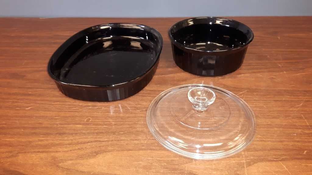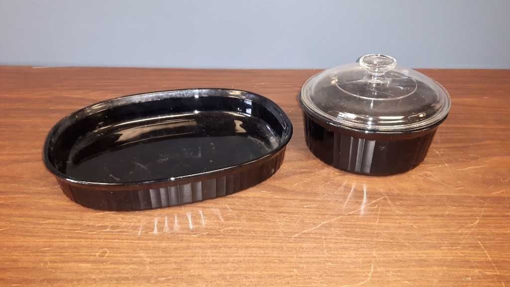 Pair of CorningWare casserole dishes 1.6 in 2.5 L one with a lid