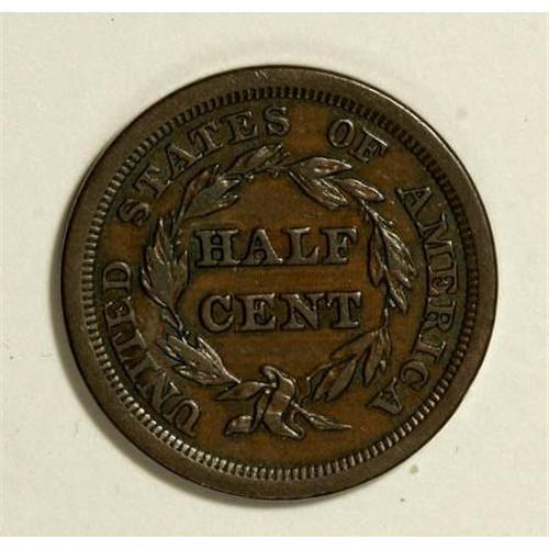 <B>Pair of Counterstamped Tokens.</B></I> Two counterstamped coins: an 1854 half cent with Perkins on the obverse, Brunk P-351; and an 1853 Arrows and Rays Seated quarter with J.M. Taylor/Broker/Chatham St/Cor. James N.Y., Brunk T-95, Genuine NCS.<BR><BR><b>Shipping:</b> Coins & Currency (<a target="_blank" href="http://www.heritageauctions.com/common/shipping.php">view shipping information</a>)