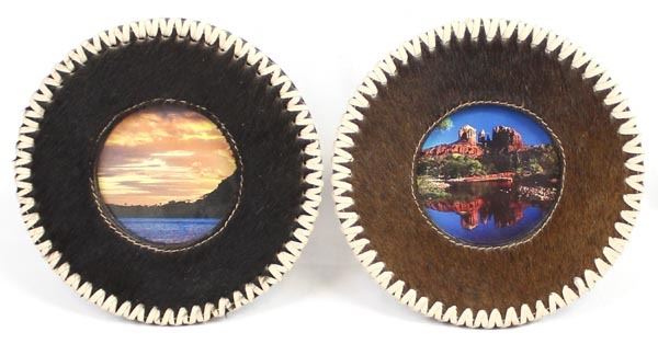 Pair of Cowhide Picture Frames, measure .75'' x 8''D