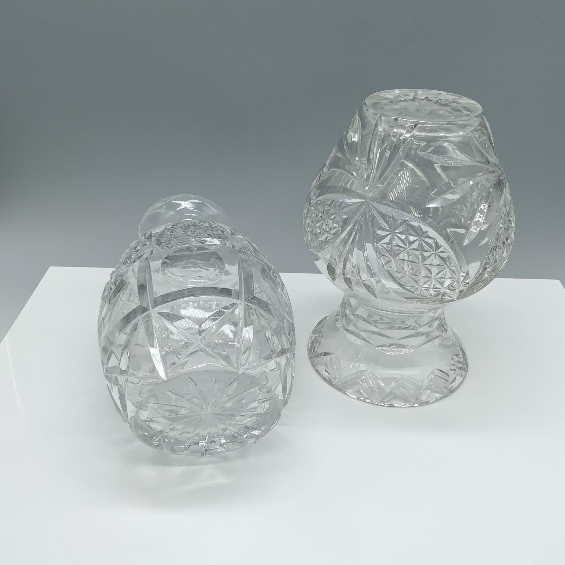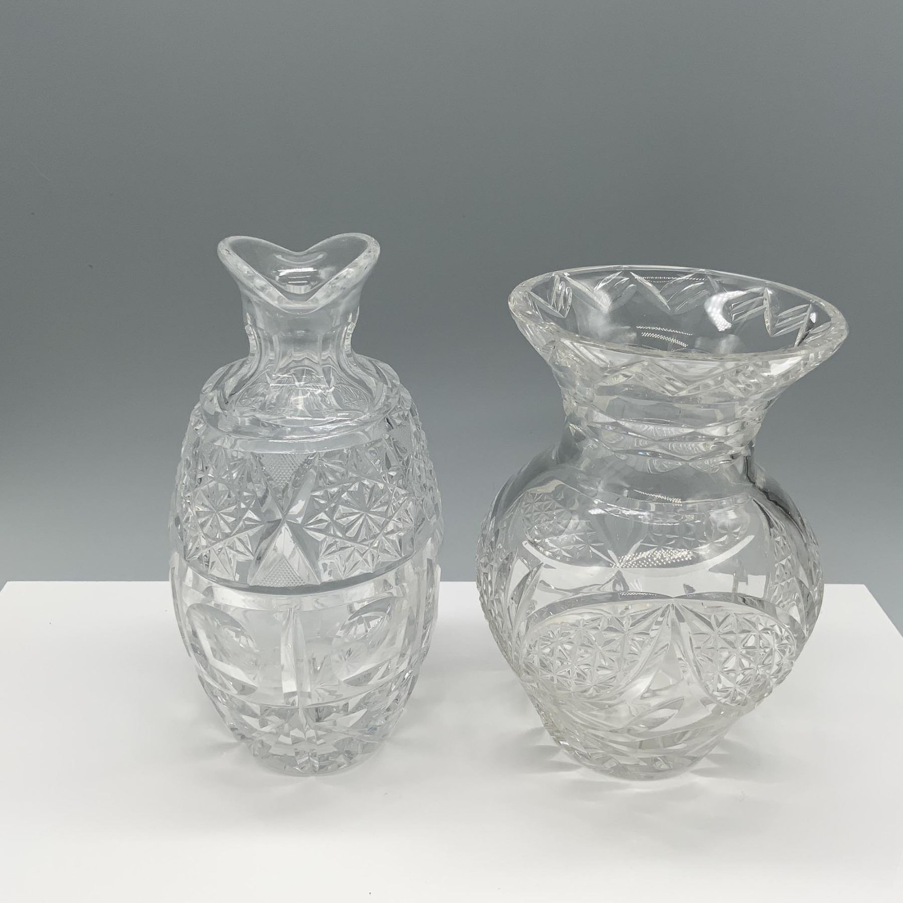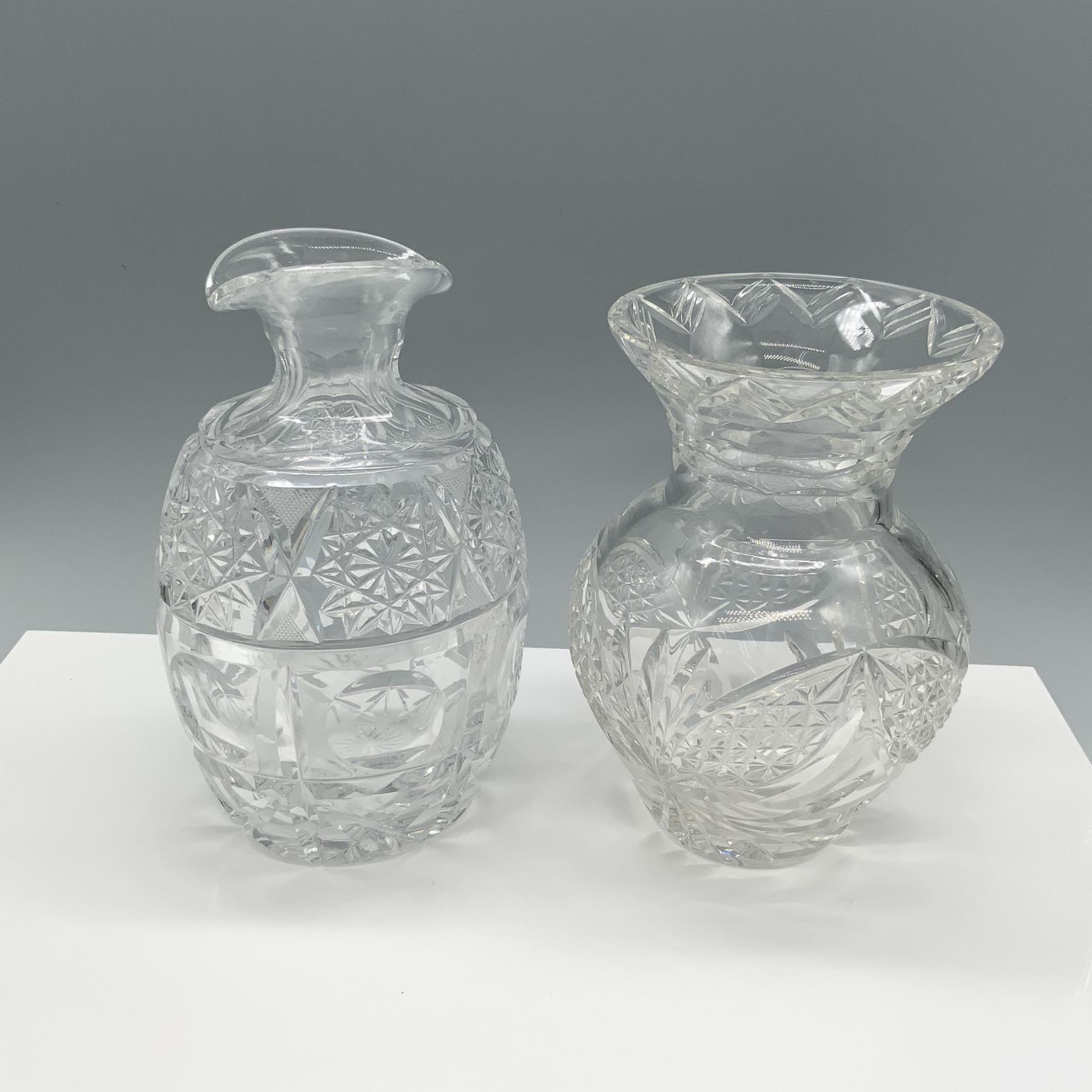 Lovely two piece set of clear vessels: a beautiful vase 5"W x 7.25"H and an intricate decanter 4.75"L x 4"W x 8.25"H.