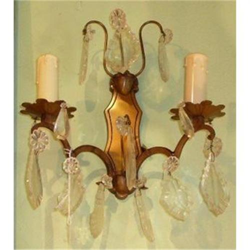 This is a superb pair of crystal sconces with two candlestick arms. They are wired for USA use and will be an elegant addition in any interior.