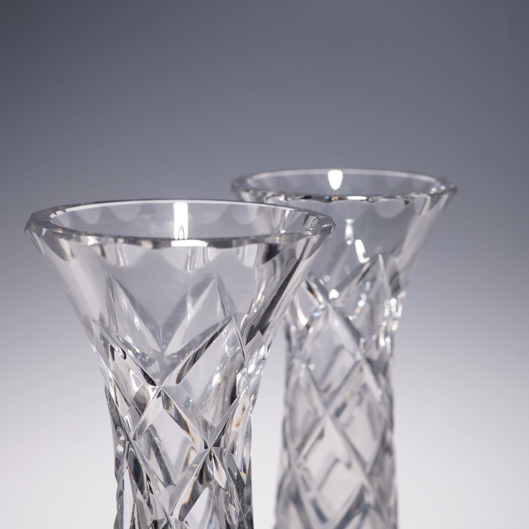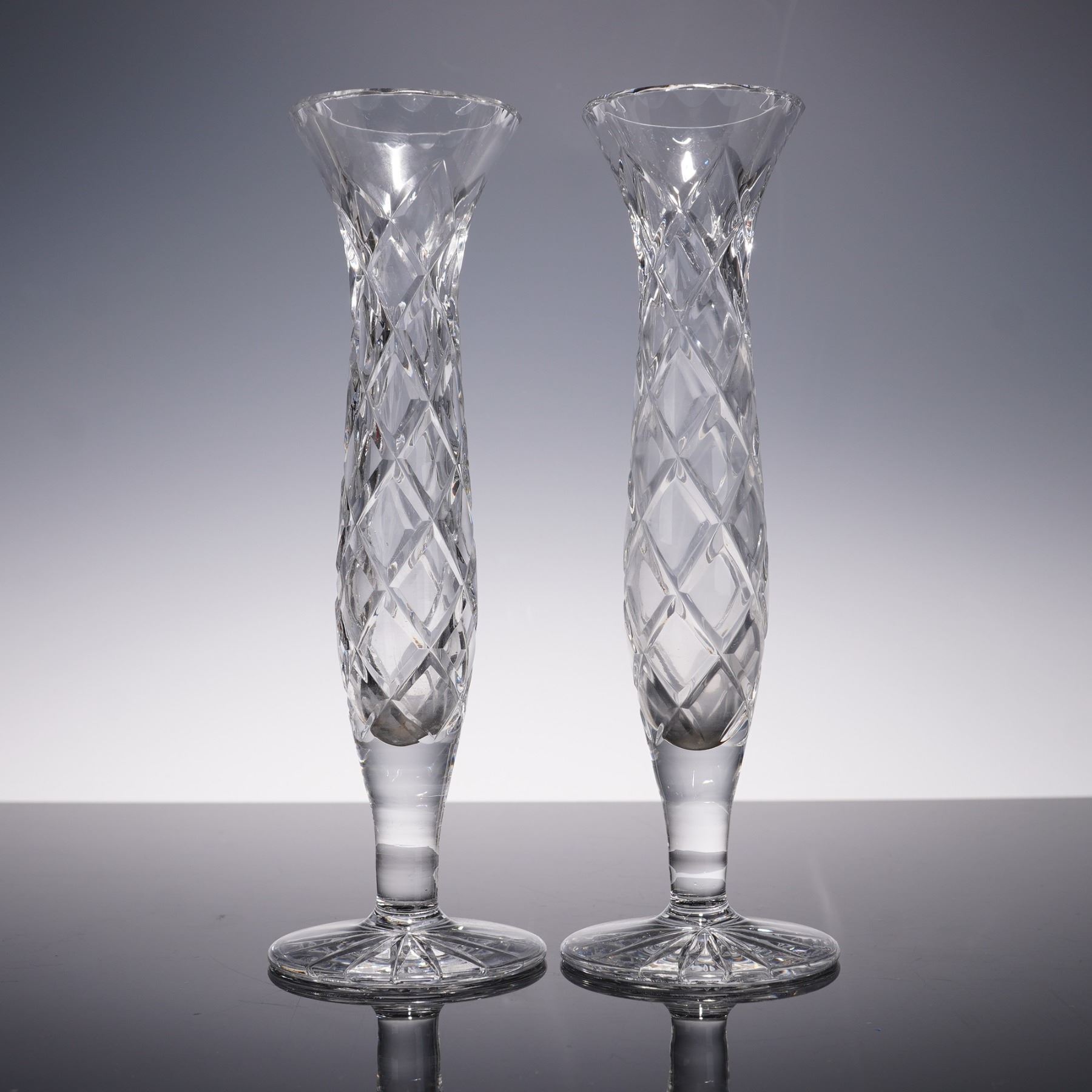 Pair of Cut Crystal Bud Vases, Diamond Pattern