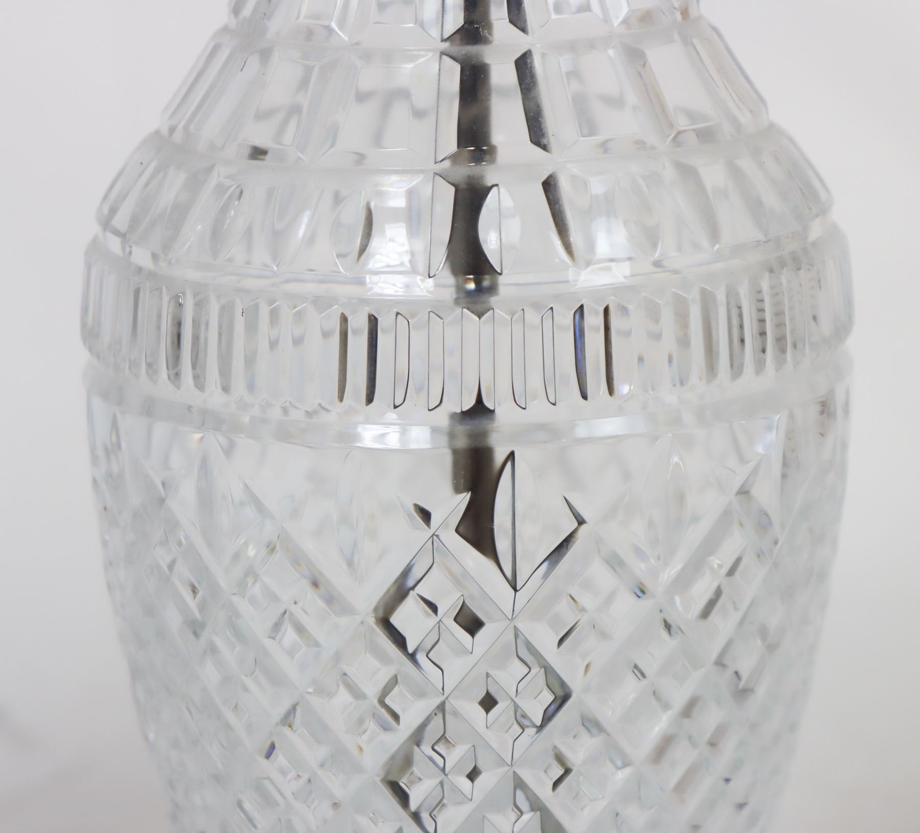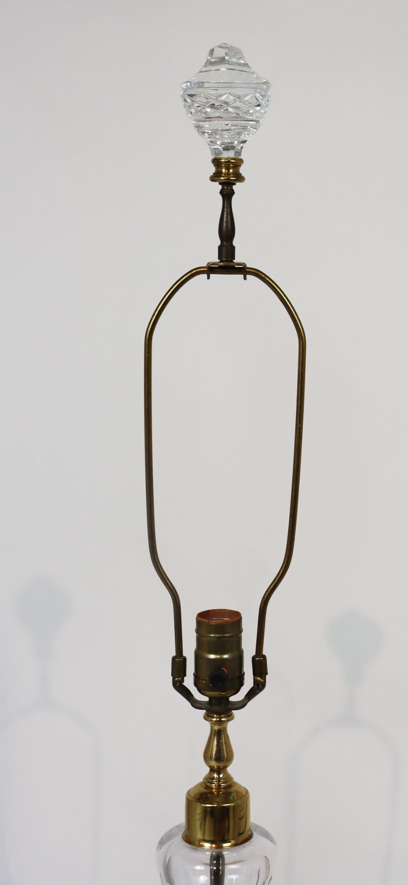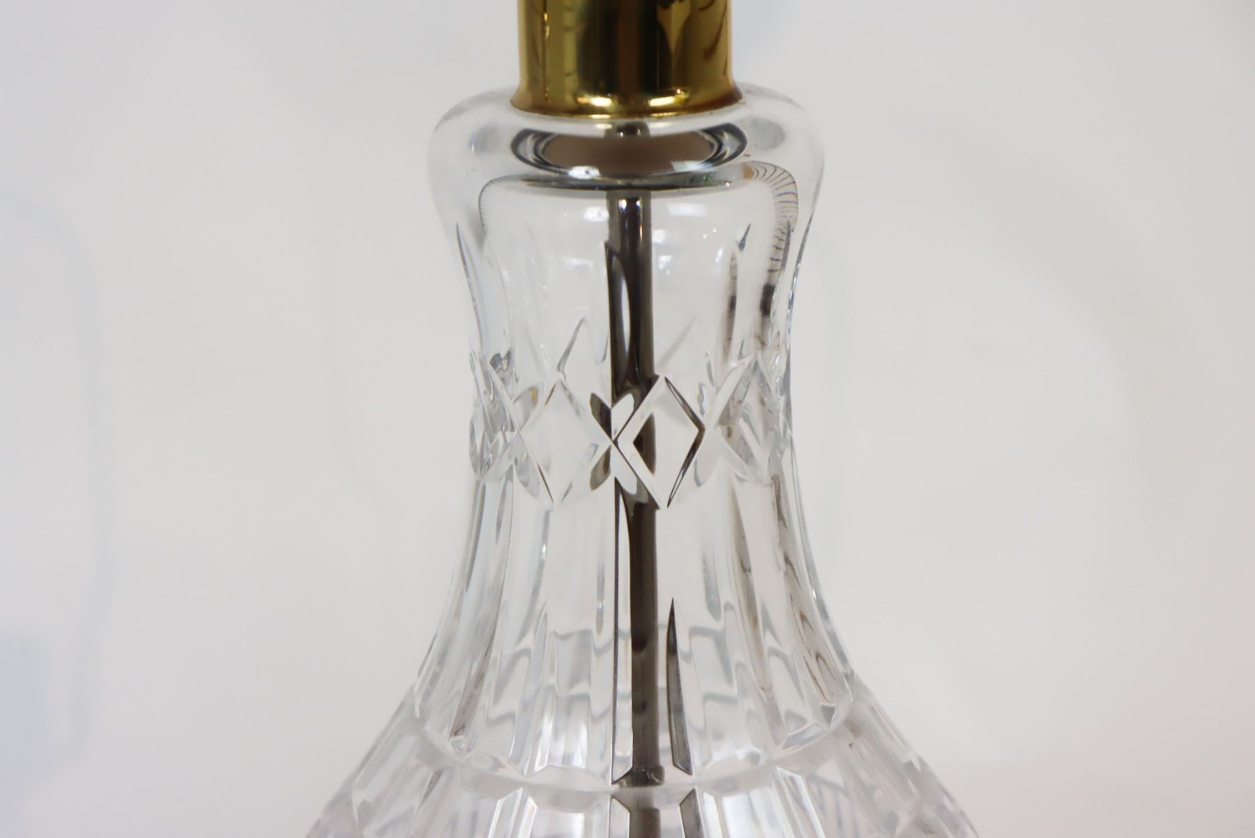 Pair of tall cut glass lamps with brass details. Size: 41 x 8 in.