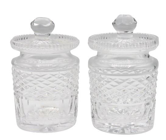 Clear cut glass small containers or canisters.
