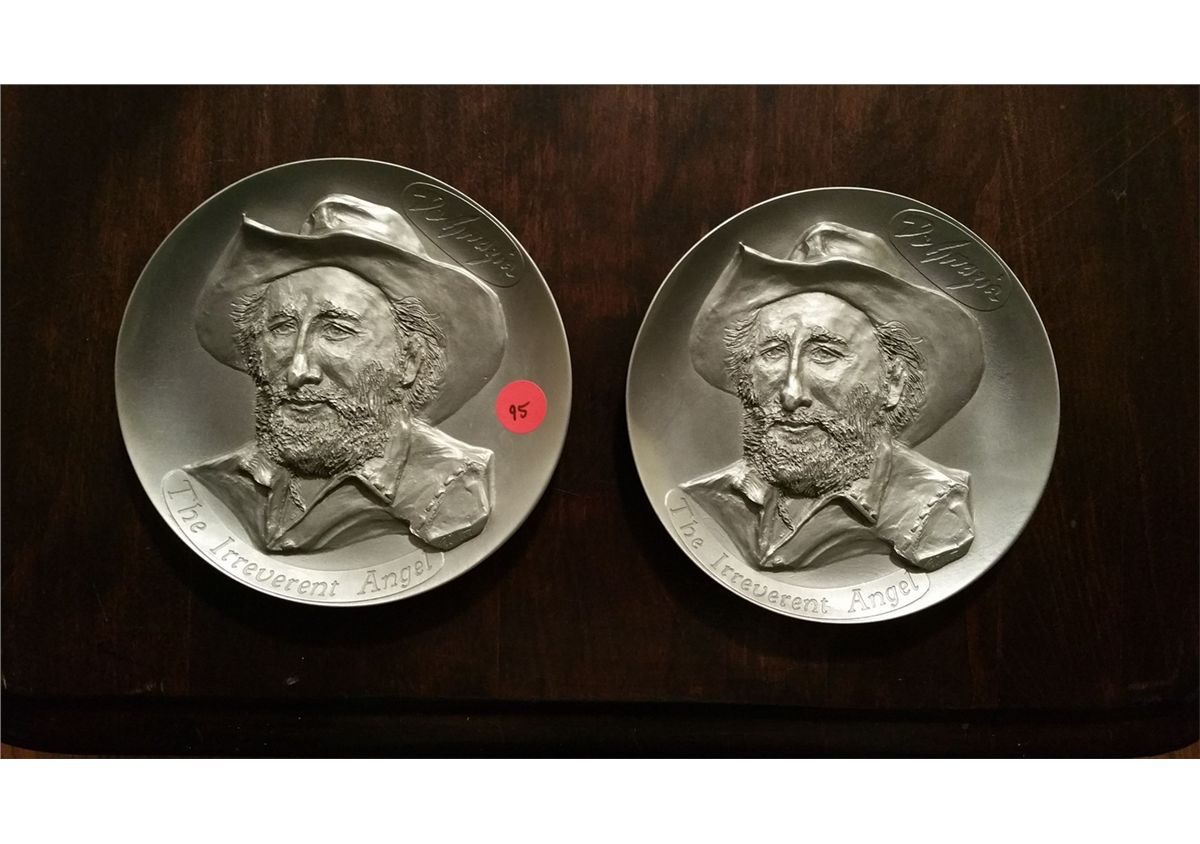 Pair of DeGrazia The Irreverent Angel Pewter Collector Plates – Limited Edition – 6”Dia – No. 1047 & 1048 of 5000 – W/ paperwork