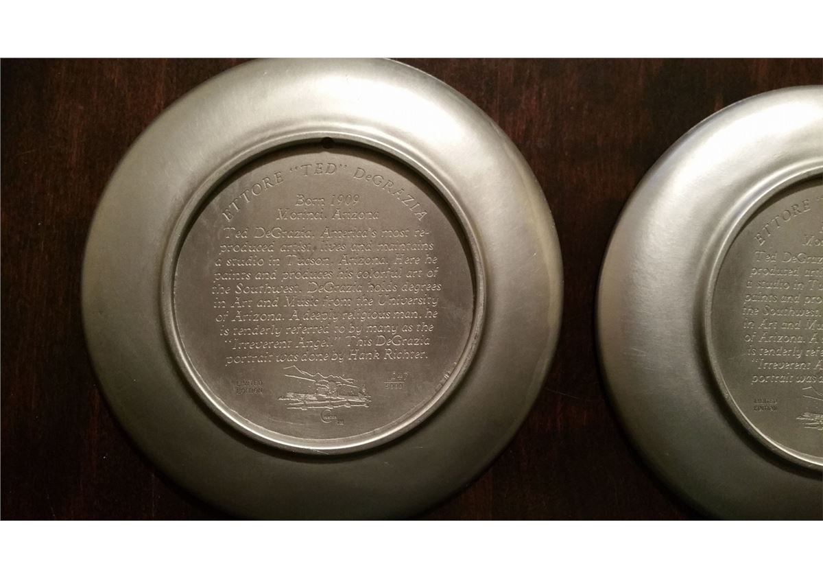 Pair of DeGrazia The Irreverent Angel Pewter Collector Plates – Limited Edition – 6”Dia – No. 1047 & 1048 of 5000 – W/ paperwork