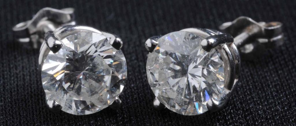 Description One weighs 1.49 carats and the other 1.45 carats. Both are I2 clarity and J&K color. White gold settings. Includes certificates. Condition (Excellent).