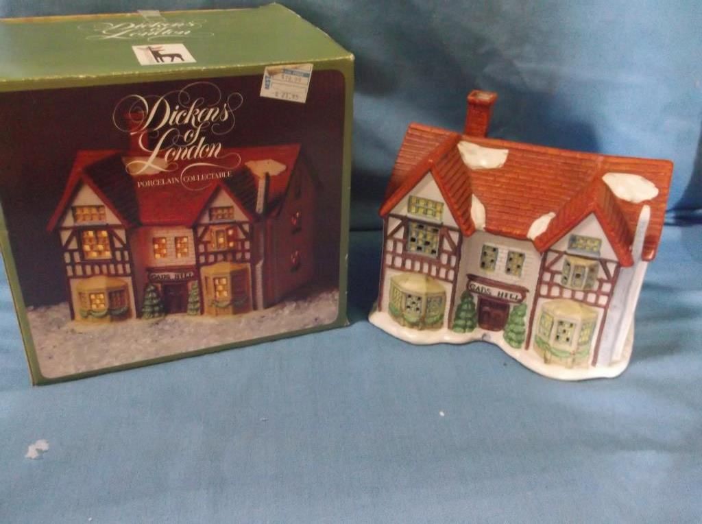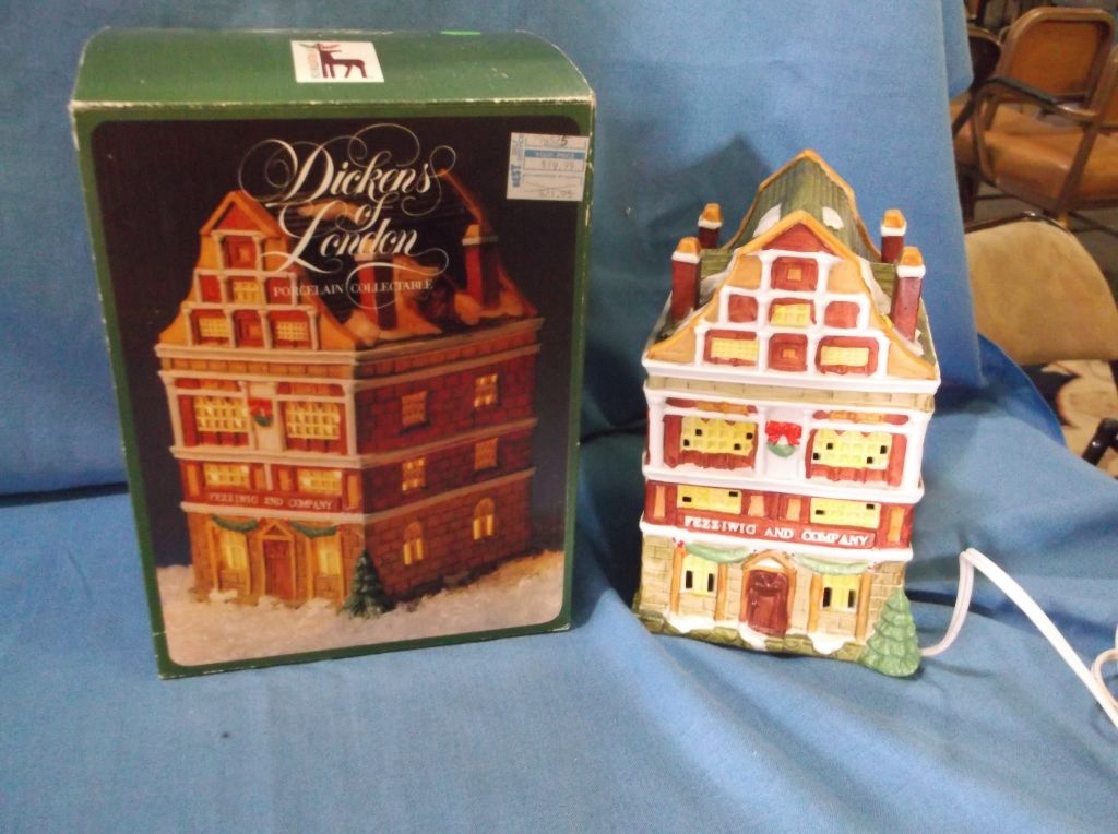 1- Fezziwig & Company Building approx 5" x 8.5" & 1- Gads Hill Building approx 8" x 7" both have lights cords to light up village & both are in box.....