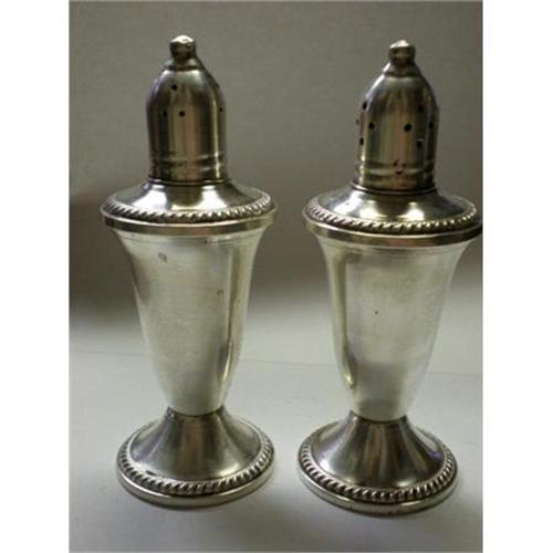Pair of Duchin Creation Sterling Silver Salt & Pepper Shakers. They're in pretty good shape with a couple slight dings and scratches. Still very practical and charming. Each are marked on bottom STERLING DUCHIN CREATIONS WEIGHTED. A lovely pair to top any table. LOWERED RESERVE TO SELL. HAVING OUR ONCE A YEAR SALE, CLEARING OFF OUR SHELFS, AND EVERYTHING IS LOWERED IN PRICE TO SELL. SOME ITEMS WE WILL CONTACT HIGH BIDDER AFTER AUCTION TO SELL IT TO THEM. HOPE YOU ENJOY THEM. NOTHING WRONG WITH THEM, JUST HAVING OUR SALE, AND CLOSING OUT A FEW ESTATE ITEMS WE STILL HAVE. GOOD LUCK IN BIDDING AND HOPE YOU WIN SOME.