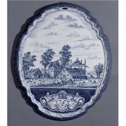 Pair of Dutch Delft-Type Blue and White, Landscape Plaques, Early 20th Century, Minor chips...