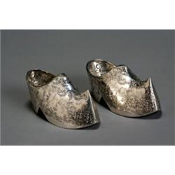 Pair of Dutch Rococo Style Silver Shoes, Circa 1900, Each embossed with harbor landscapes and...