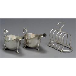 Pair of Edward VII Silver Sauce Boats and a Toast Rack