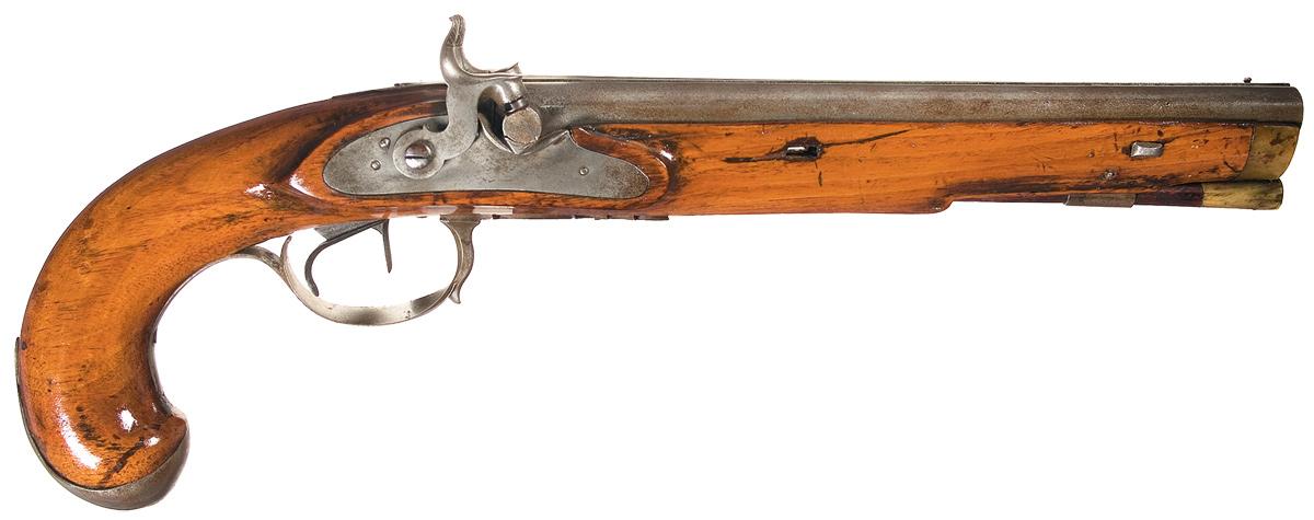 B) Unmarked Double Barrel Percussion Conversion Pistol
