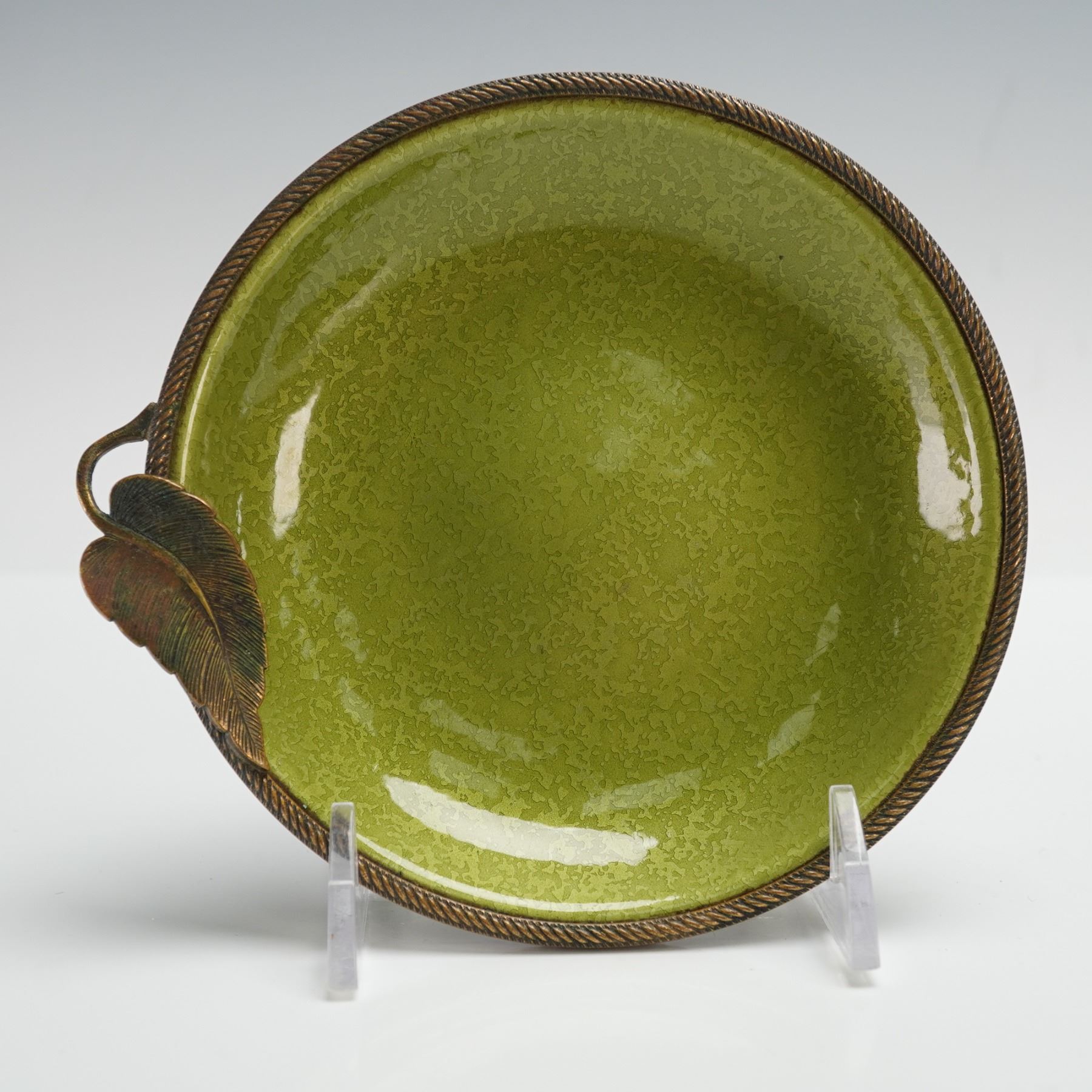 Pair of Evans Hand Enameled Ring/Coin Dishes with Braided Leaf Design