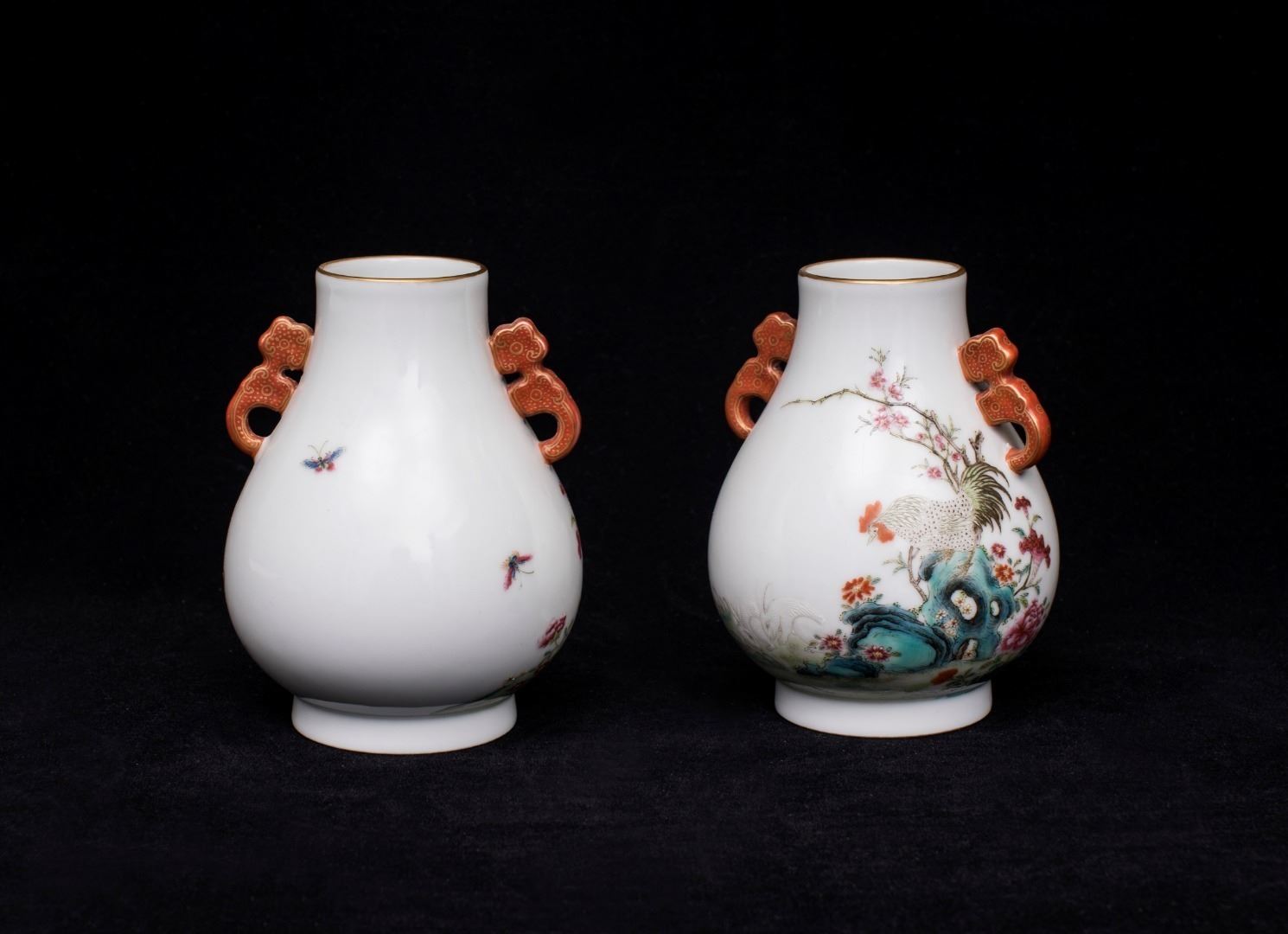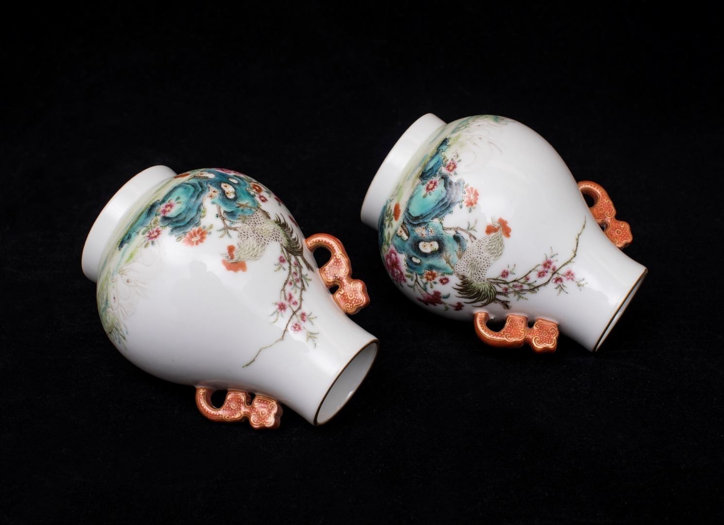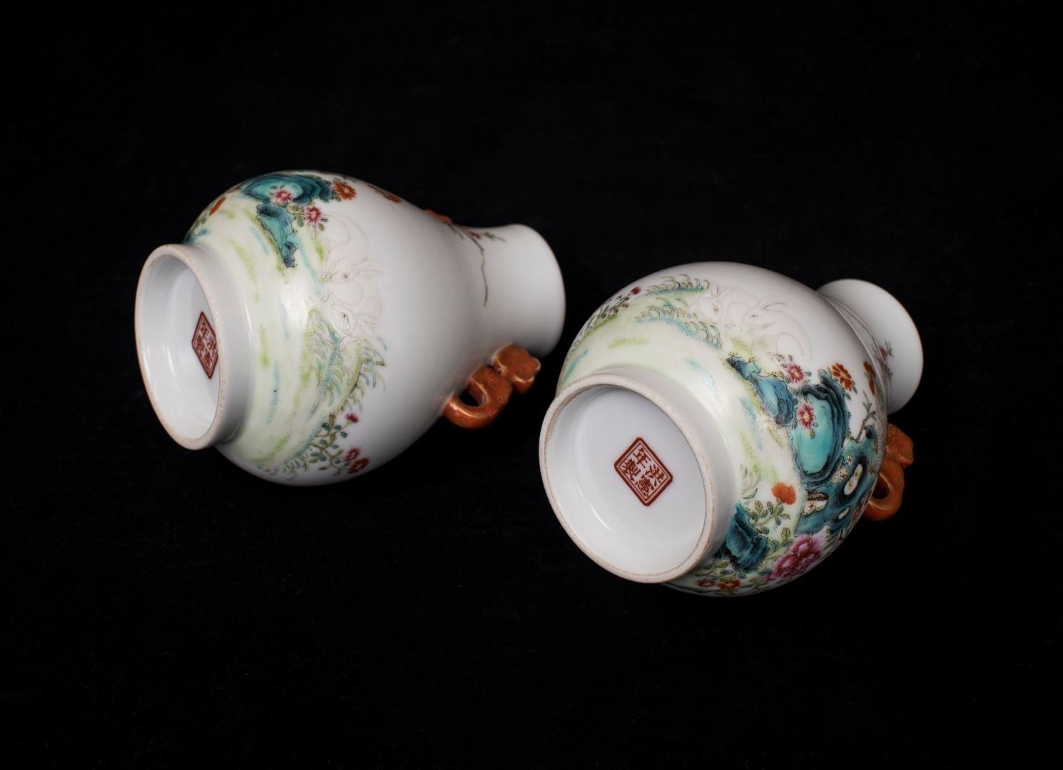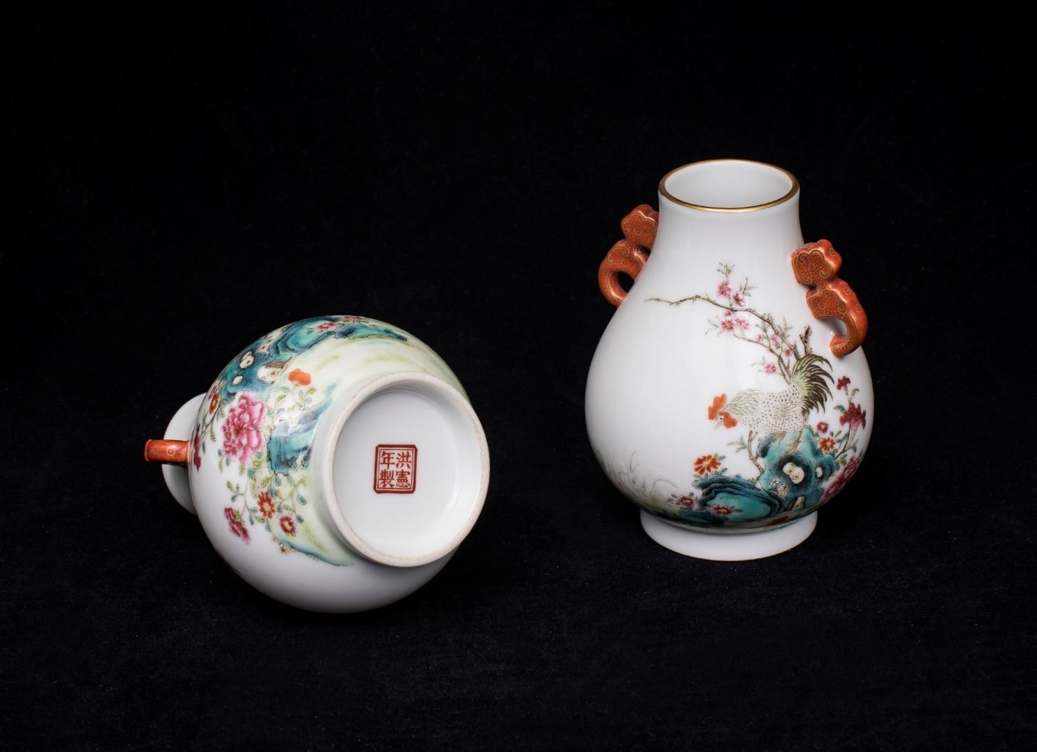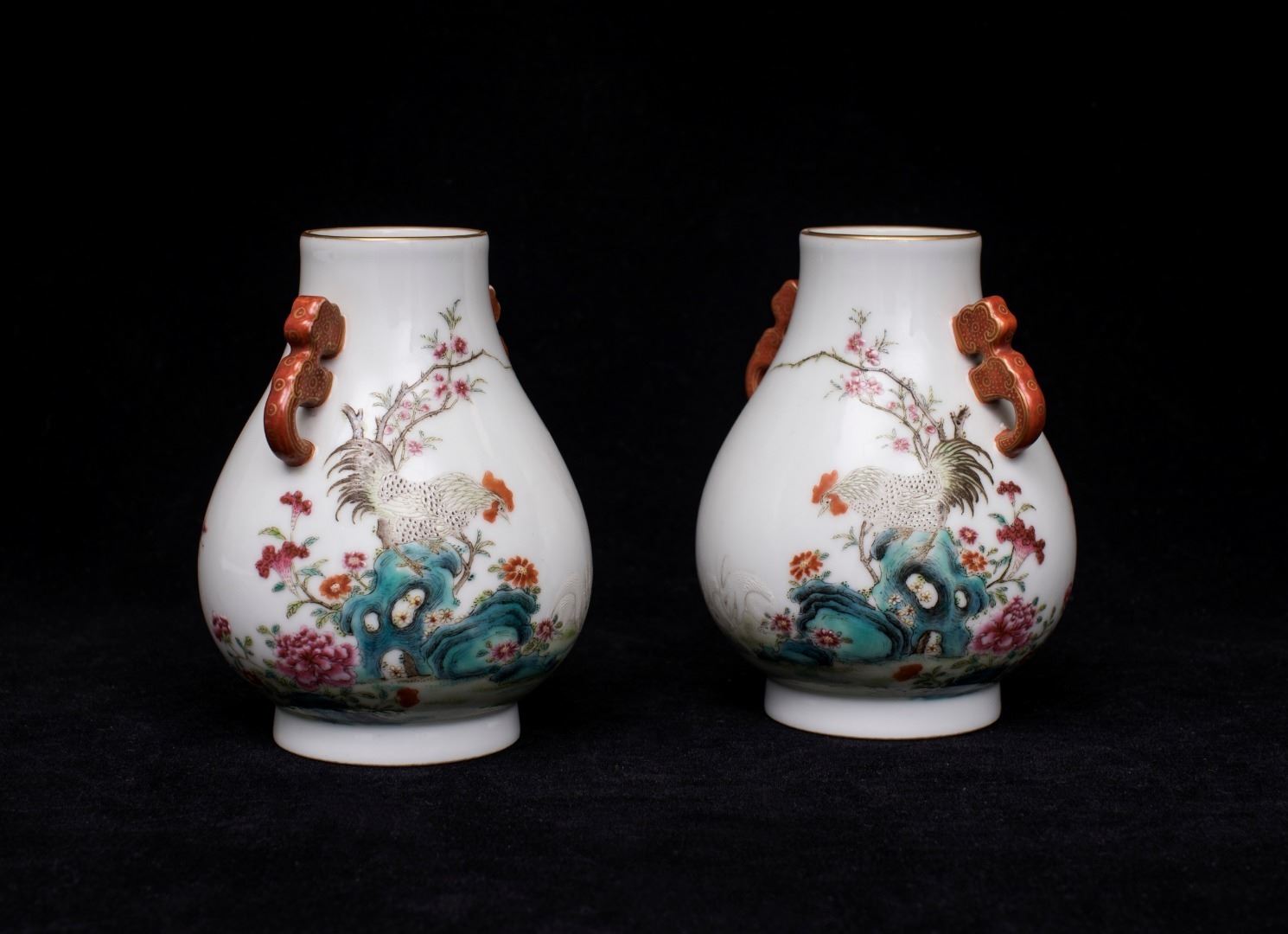 Pair of Famille Rose Porcelain Zuns, Hongxian-Nianzhi Mark