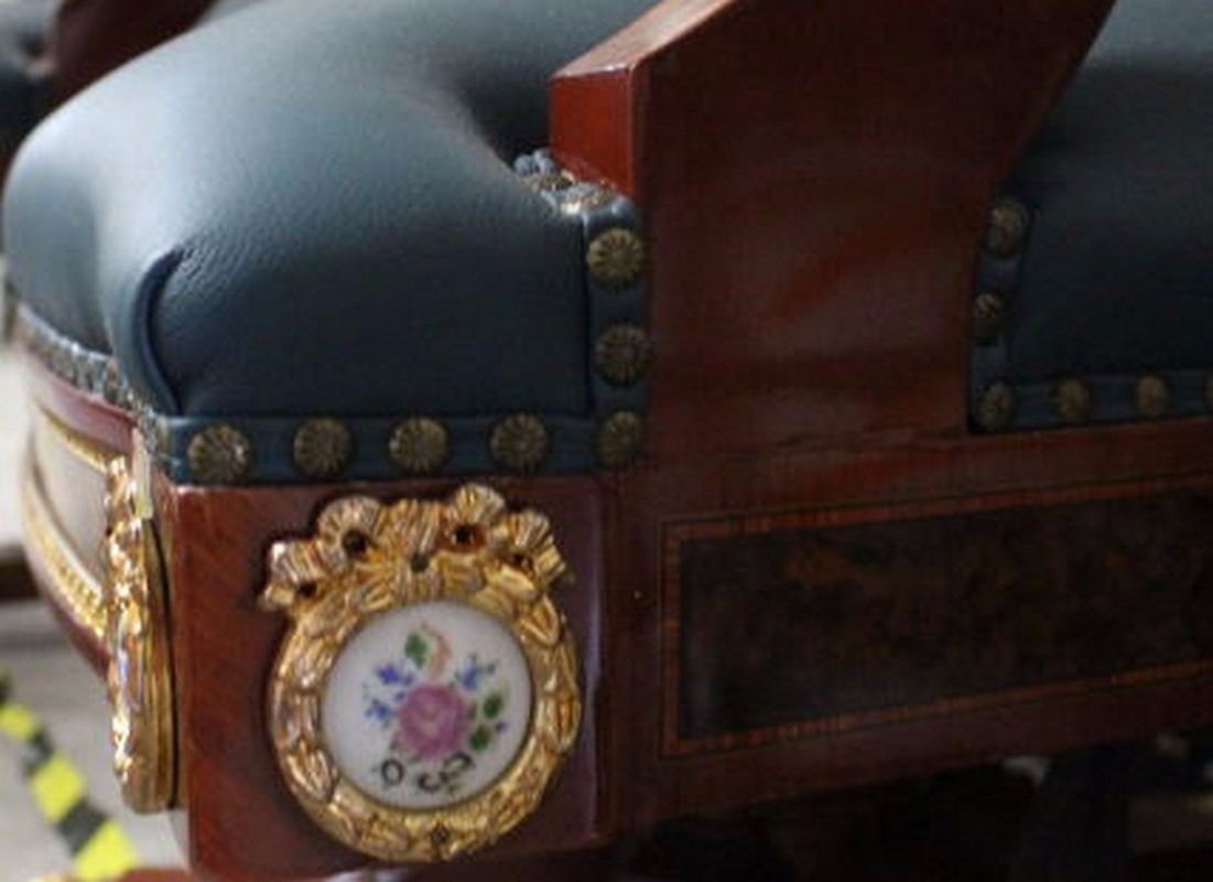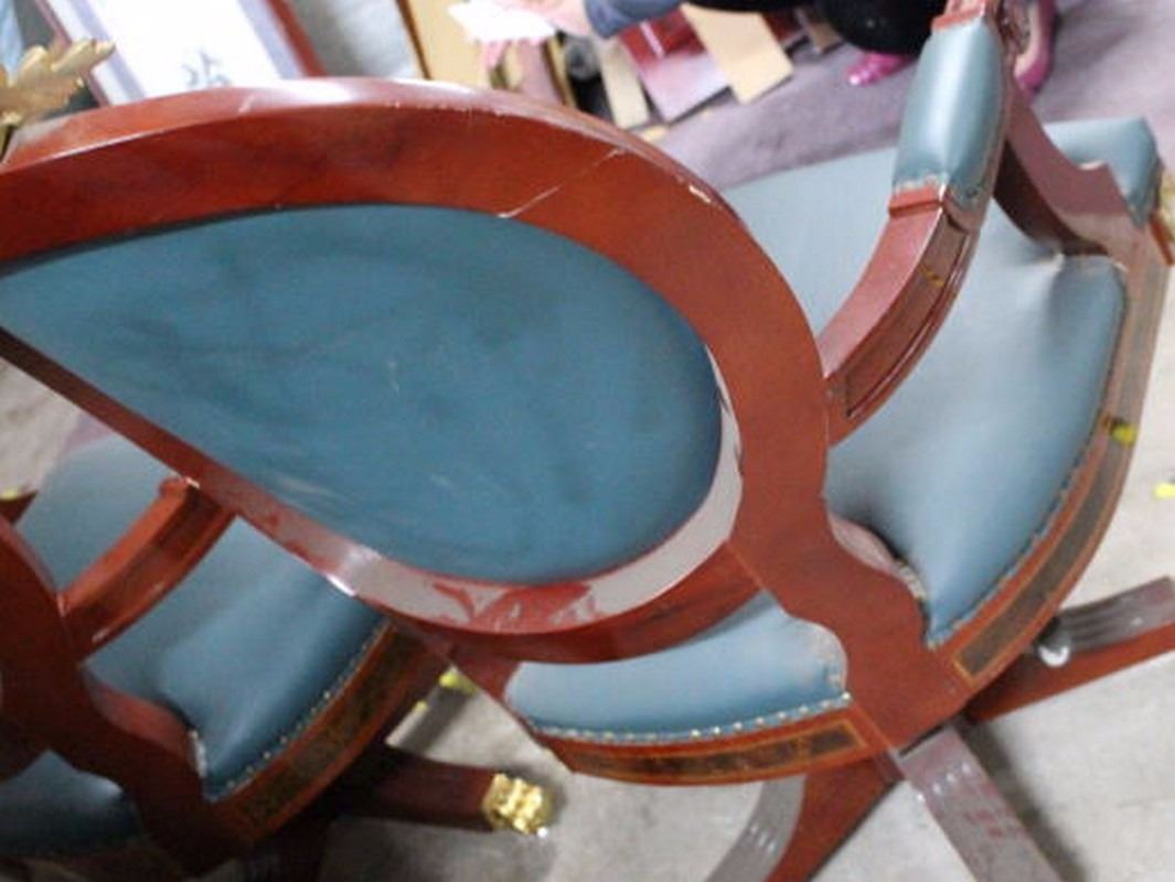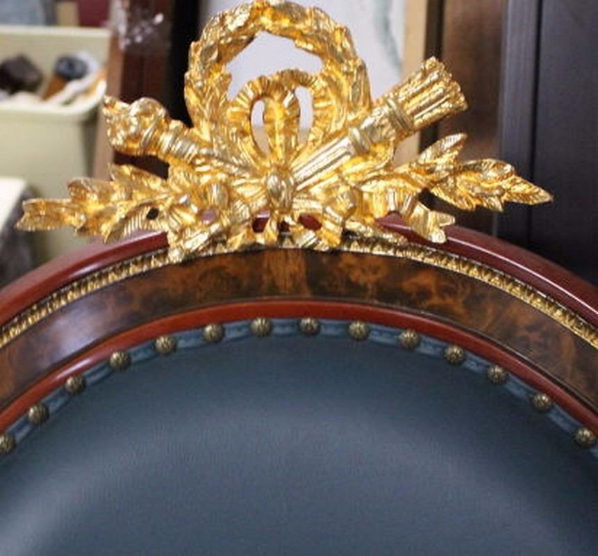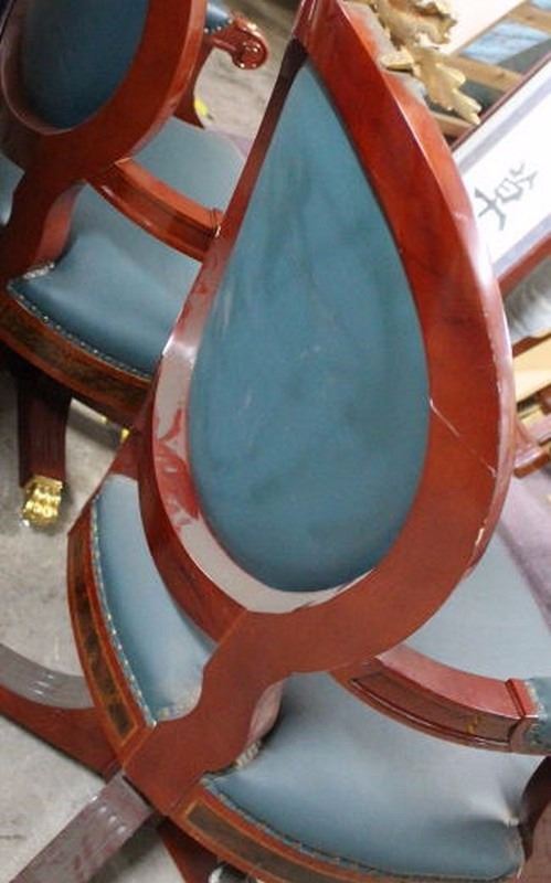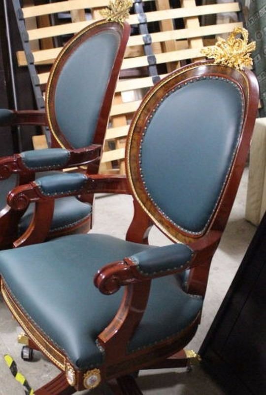 Pair of Fine Imperial Execuitve Chairs (Gilted, Leather, Mahoganny & Porcelain Finishings) Fine Reproductions. 60"X30"CHAIR/28"X24" SEAT each chair