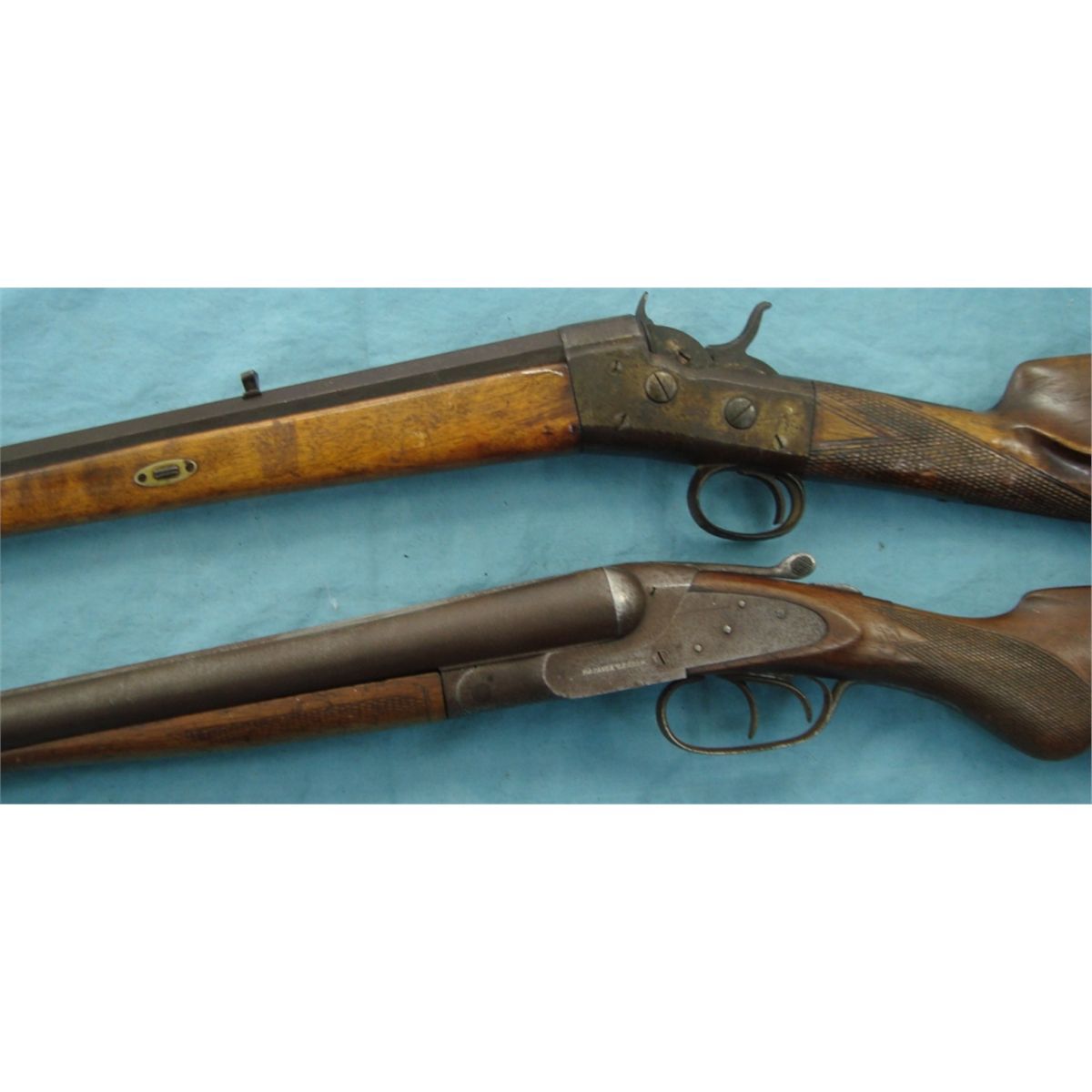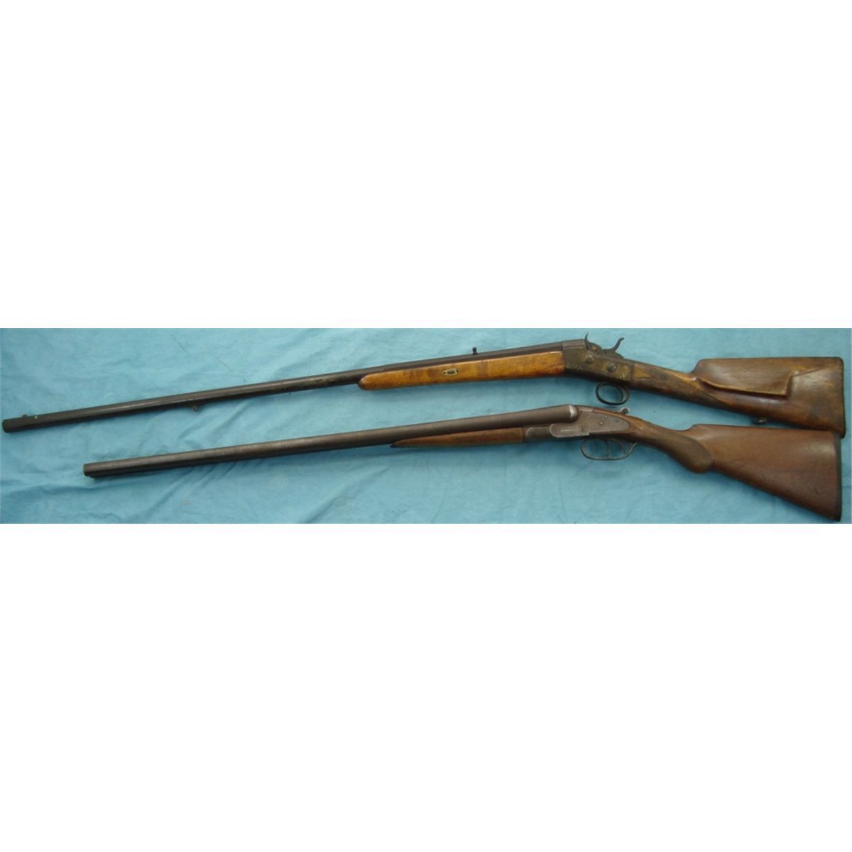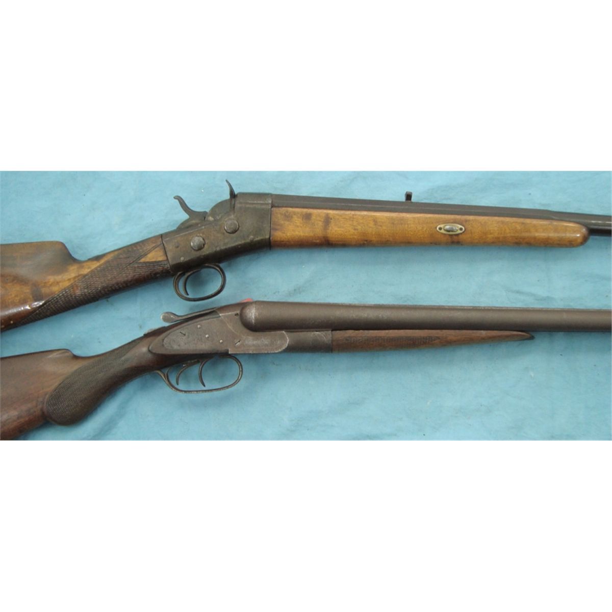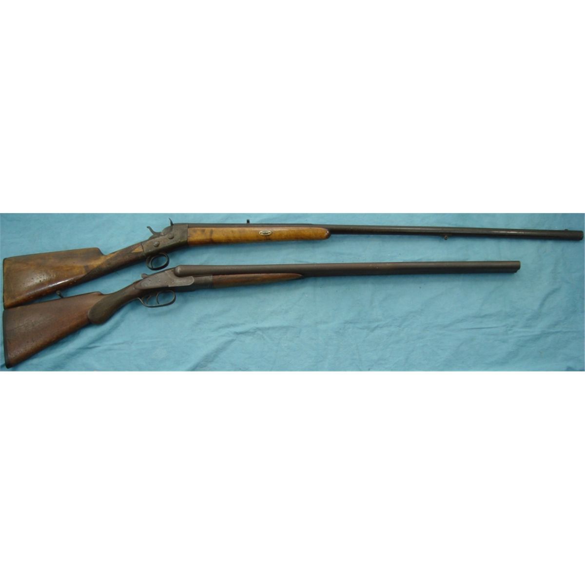 Batavia Leader Dbl. Bbl. 12 ga #80559; in solid but rough condition. Antique Husquvarna Rolling Block 12 ga. In fair condition.