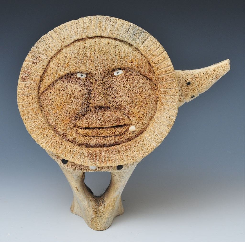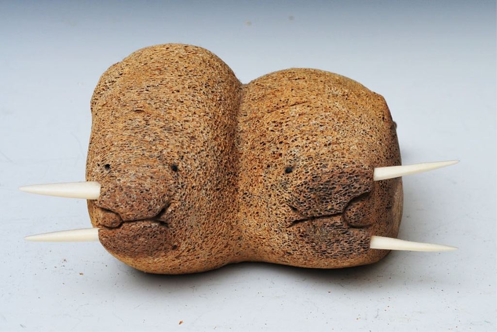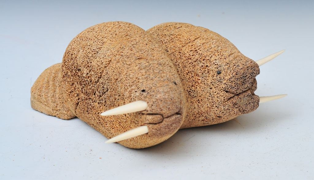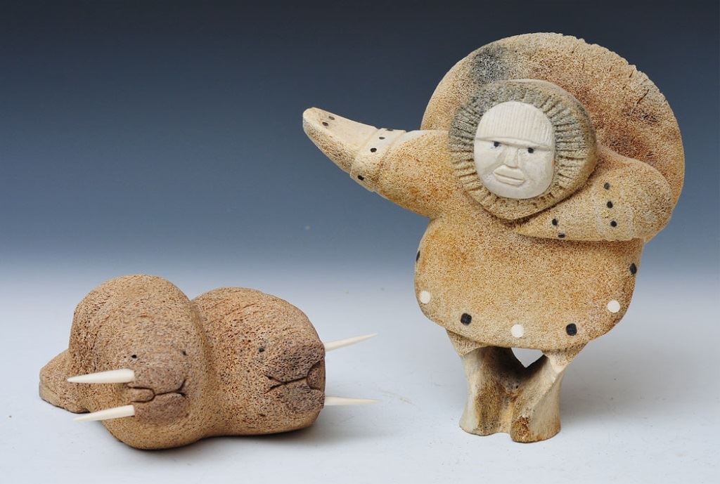 including standing Inuit figure and pair of walruses