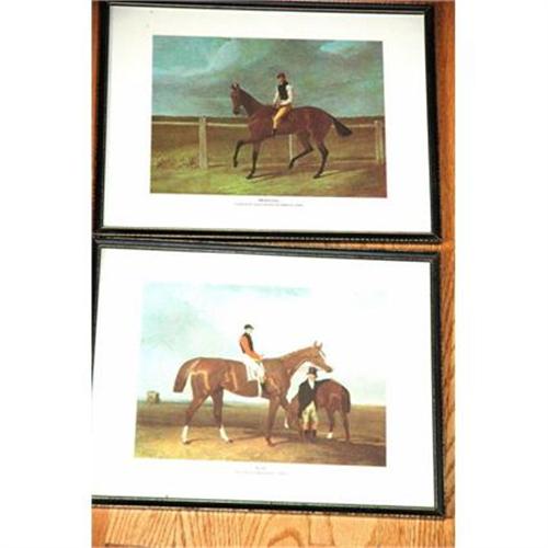 Two equestrian race horse prints.  One is of a painting by John Frederick Herring Senr. entitled " Matilda.  The other one  depicting two horses is a print of a painting by Abraham Cooper entitled "Elis".   <p> They are both in excellent condition are behind glass in a 9 1/2" x 12 1/2"  frame.   The a few spot on the inside of the glass on both frames.  I am pretty sure the spots are limited to the glass and not on the print although I have not had them out of the frames.  Currently neither frame has picture hanger wire therefore they are not ready to hang on the wall.
