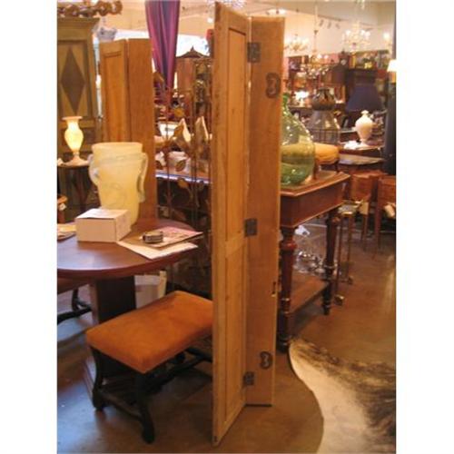 French 19th century stripped pine interior shutters, hinged, original hardware (pair).