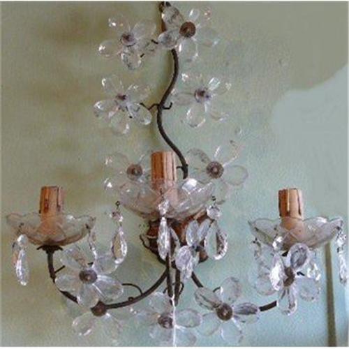 This is a gorgeous pair of French crystal sconces in the form of a branch of flowers.