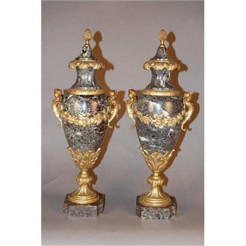 <tr><td>Title:Pair of French Marble and Bronze Cassollettes</td></tr>