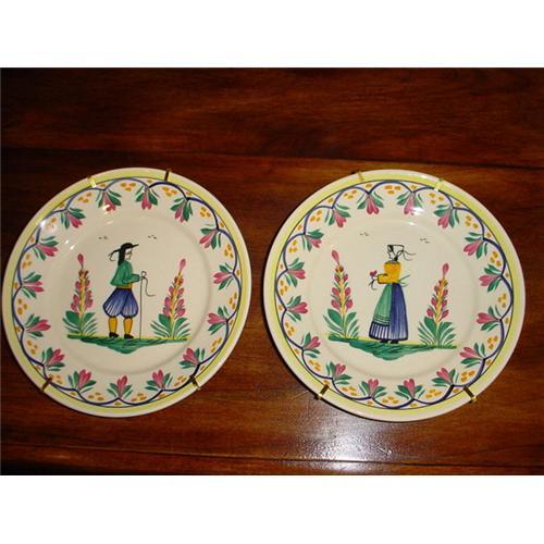 </font></strong>Highly collectible, Authentic pair of French Quimper HB plates. Each plate was hand-made and hand-painted by the artist. You can see on the picture, the signature HB, Quimper (Decor) St Lunaire and numbers: F176 D1.Ter P12. Excellent condition (No cracks, no chips). Lovely piece for your collection ! Don't worry for the shipping...we ship from Texas (not from France)! </font>