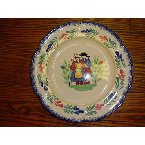 A very nice pair of French faience plates(with the famous Breton couple)made by Pornic, France. Each plate was hand-made and hand-painted by the artist (On the photo, you can see the stamp to guarantee this signature of the "Faiencerie de Pornic"). Excellent condition (No cracks, no chips). This kind of plates made in Pornic, Britany is highly collectible in France. Lovely pieces for your collection or for the decoration of your home!