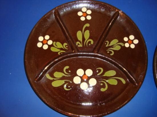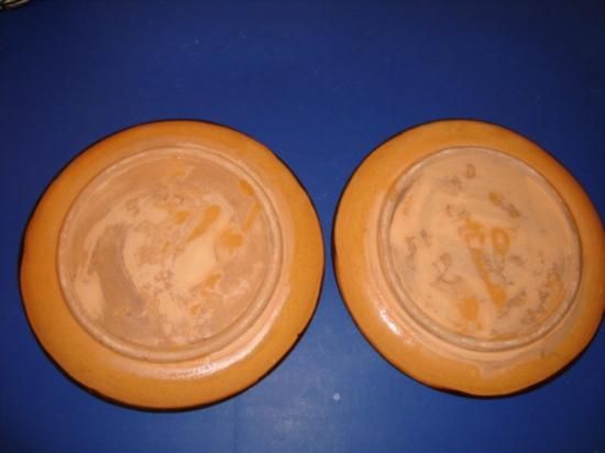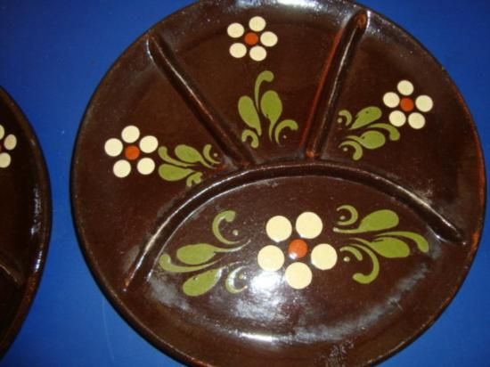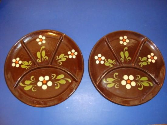 Highly collectible pair of old plates from Alsace (Eastern France). These charming Alsatian pieces of pottery (hand-made a nd hand-painted), dating around 1940's, come from many different villages throughout the region. The dark brown "terre vernissee", or glazed pottery, with its decorative flowers, comes from the village of Soufflenheim. Good condition (No cracks, very little chips as you can see on photo). The price is for the pair of plates. We ship from Texas (not from France).Diameter: 9"