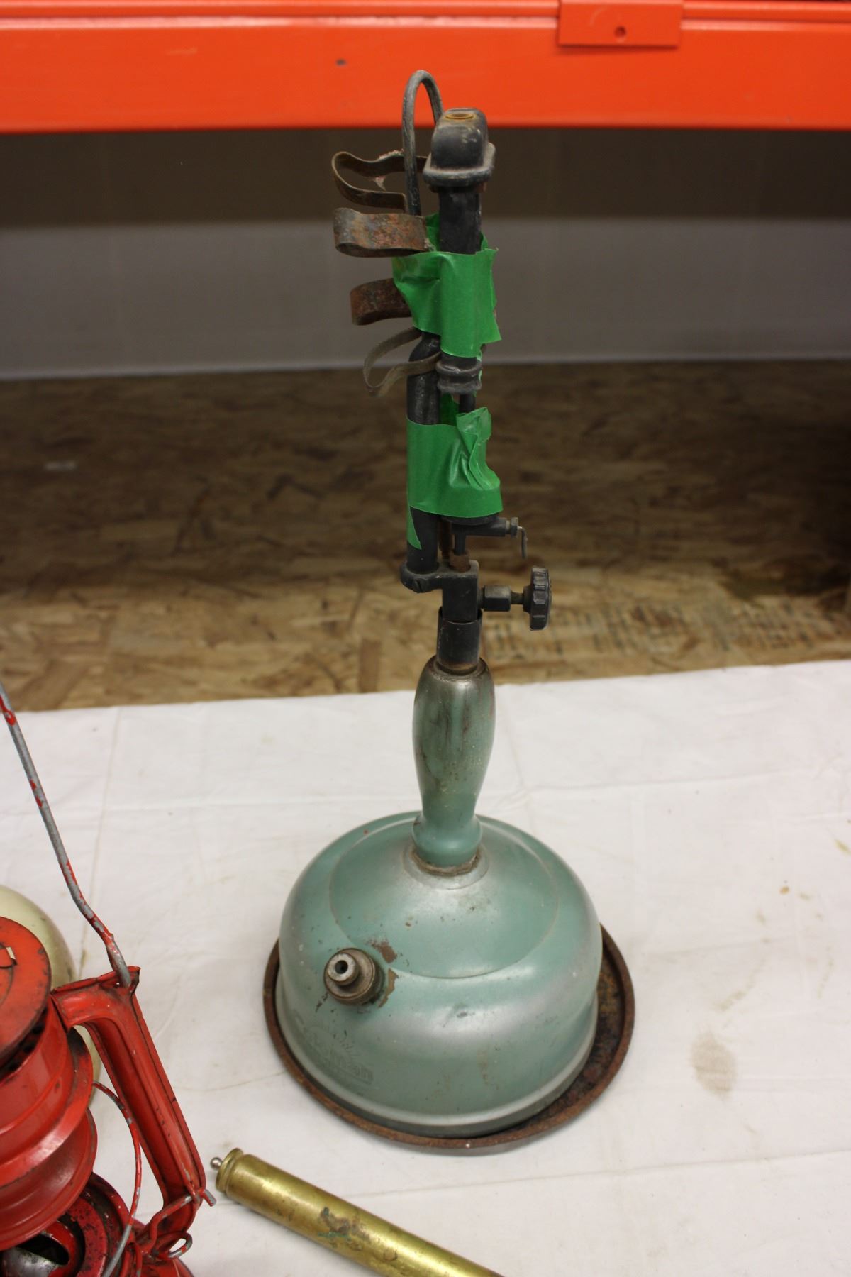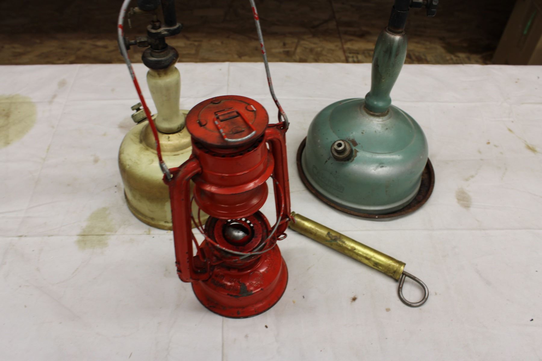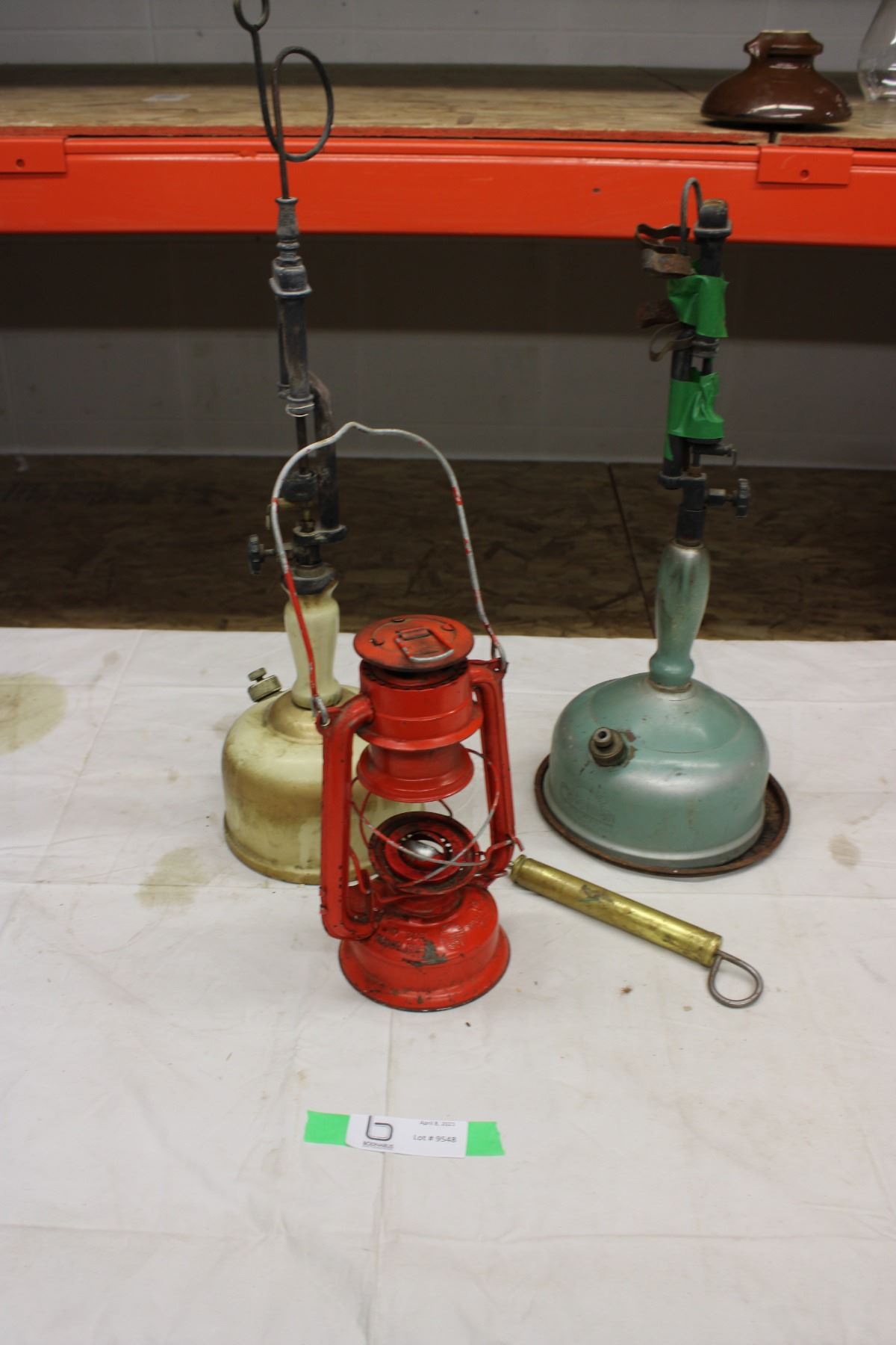 Pair of Gas Lanterns with Brass Pump and Small Barn Lantern