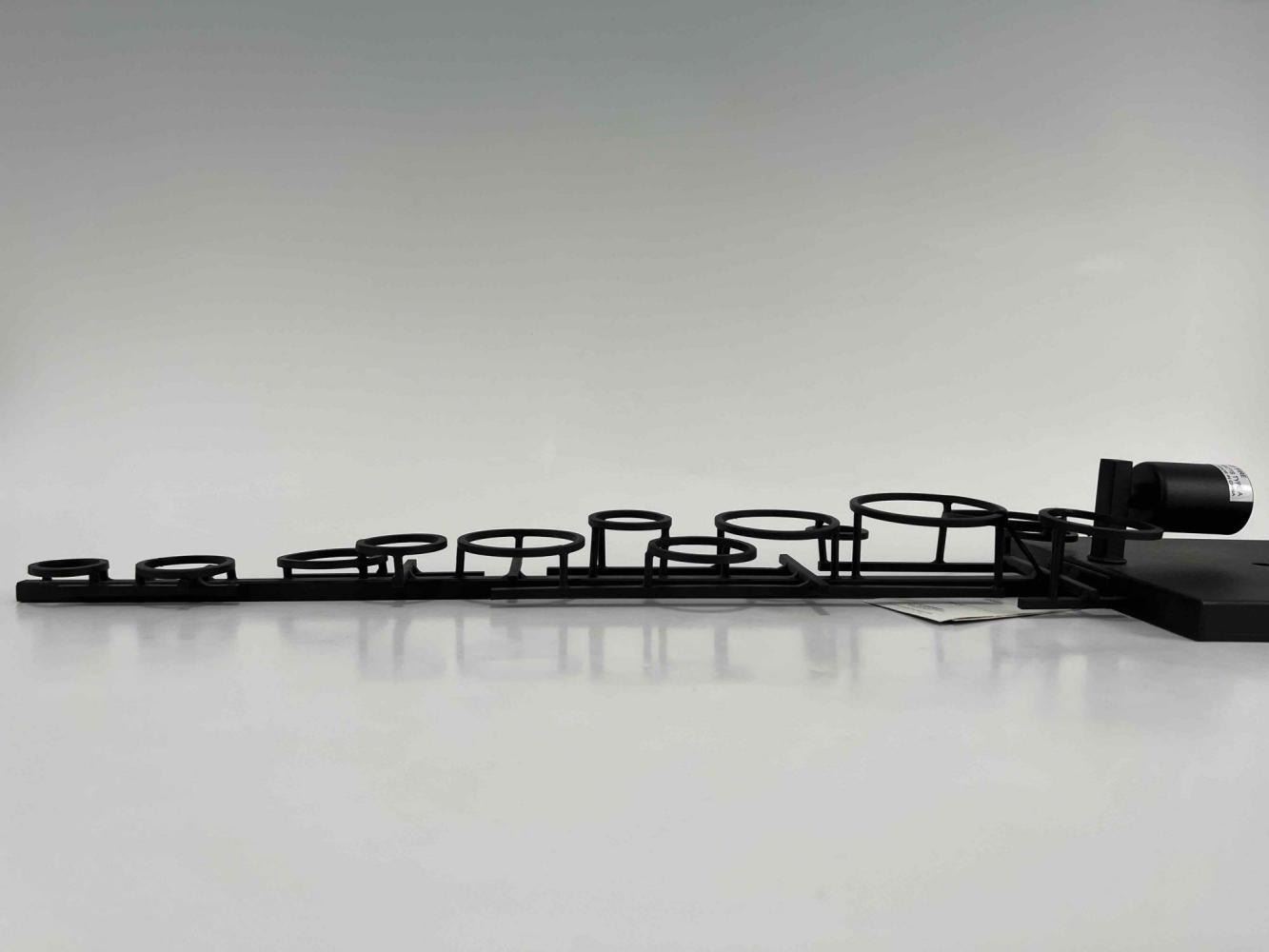 Pair Of Modernist George Kovacs Designer Metal Wall Sconce Lamps. Attached Tag Reads "George Kovacs started selling lighting in a tiny store on Madison Avenue In New York City in 1954. With wonderful designs and terrific advertising, the business expanded, George started manufacturing, and today many Kovacs designs can be found in museums throughout the world. To own a George Kovacs lamp or fixture is to own tomorrow's heirloom" Designed in California, USA, Made In China, A Minka Group Company. Approximately 29.75L x 7.5W x 3.0D in.