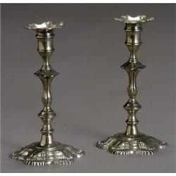 Pair of George II Paktong Candlesticks, Circa 1750, Each having a shell-cast foliate bobFche...