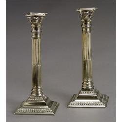 Pair of George III Paktong Candlesticks, Circa 1790, Each in the form of a Corinthian column...