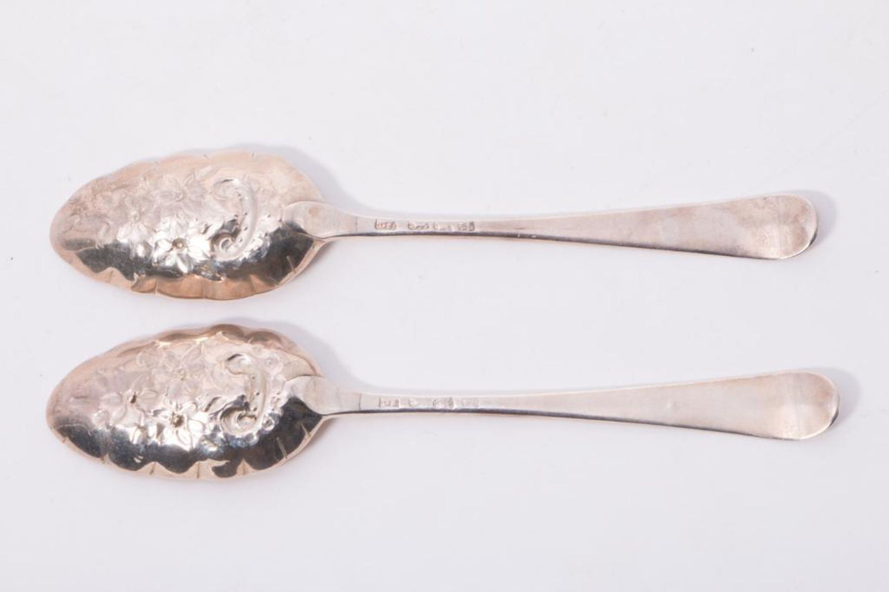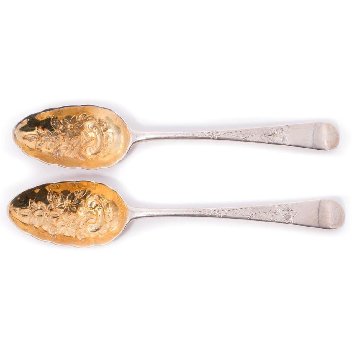 Pair of Georgian Silver Berry Spoons with gold wash on the bowl, London, 1816. Weight-148. Condition: Good, wear to be expect with age. Dimension: Length-8.5"