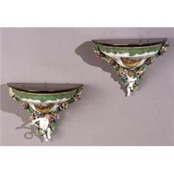 Pair of German Porcelain Floral Encrusted and Figural Wall Brackets