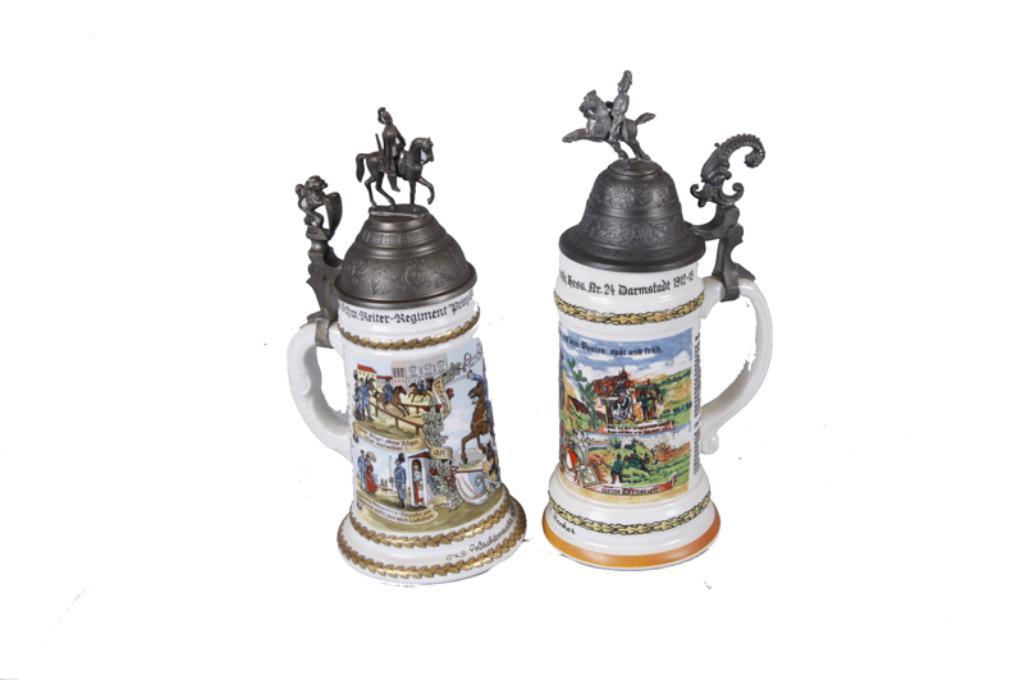 Pair of German Regimental Steins Decal decoration, one dated 1896-99 (Wachtmeister Doering) and one