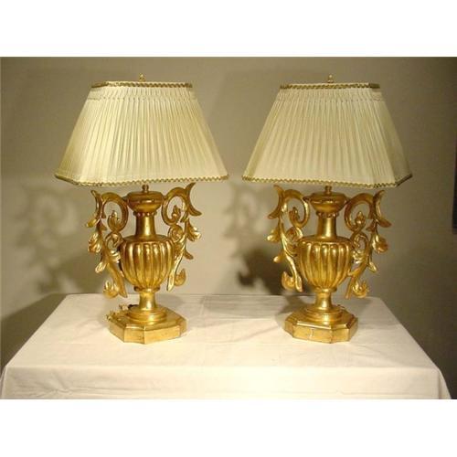 <tr><td>Title:Pair of Giltwood lamps with custom shades</td></tr>
